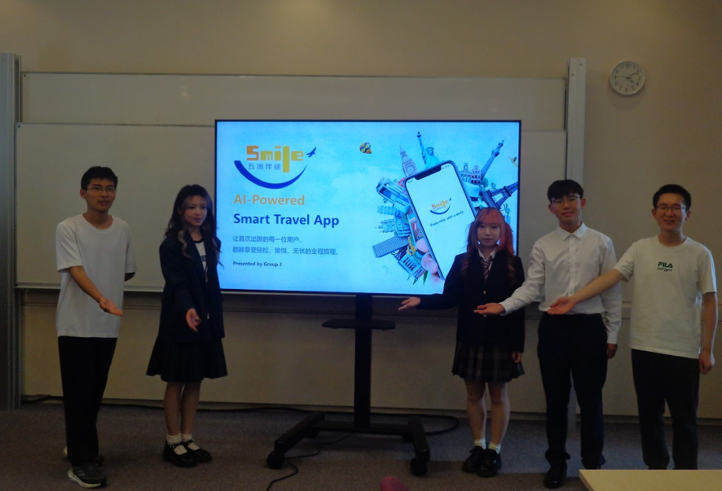 承办的2025中英青年创新大赛暨中国国际大学生创新大赛(2025)英国区域赛决赛举行。本次项目终期考核与创赛有机结合在一起,同学们分成5个小组,围绕“AI+”,构想出创业想法,并在终期汇报中进行路演。