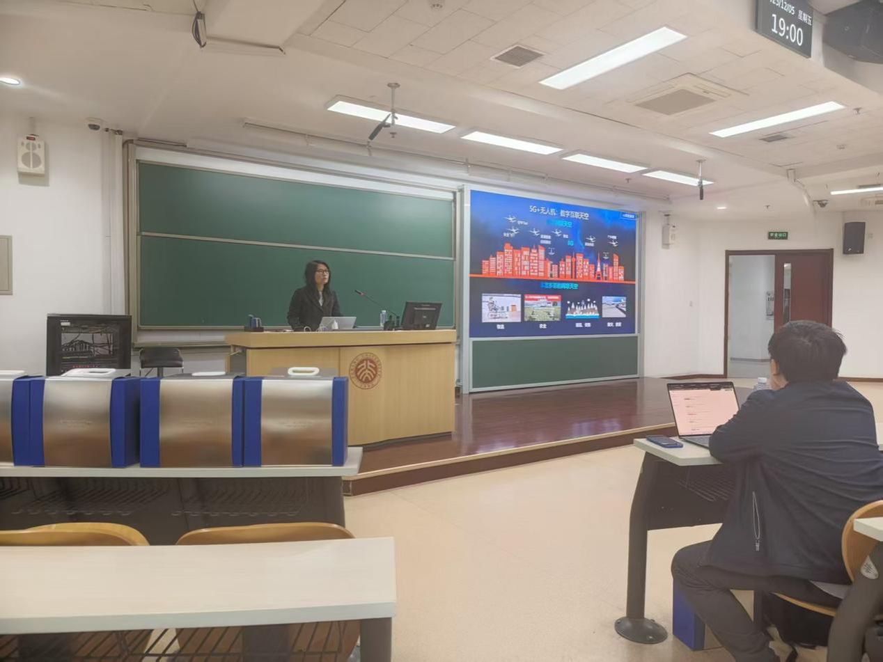 首先,贾祥月以“世界上最大的机器是什么”的问题引入讲座中的重要对象——电信系统,又以“4G和5G中的‘G’是什么”的问题调动同学们的积极性,进一步普及了第五代移动通信网络的相关基础概念,也强调5G的发展使命是丰富人们的生活和赋能千行百业。接下来,她通过二十世纪八十年代到“2030+”的时间轴,介绍移动通信网络发展时从人的互联到人机物的互联再到智能互联的具体过程,也列举了沉浸式云XR、全息通信、感官互联、Agent交互、全域智能互联网络、数字孪生这六个未来通信网络即将实现的功能。她还鼓励大家畅想通信业务发展的关键节点,并以百兆速率、基于云的AR/VR、全自动驾驶、智能制造这四个不同领域的发展关键节点为示例,突出5G移动通信技术为各行各业所能创造的崭新价值。本部分以华为和海尔联合制作的宣传视频作为结尾,展示了中国大规模的基站及影响极广的业务,更显5G技术万物互联的核心特征。