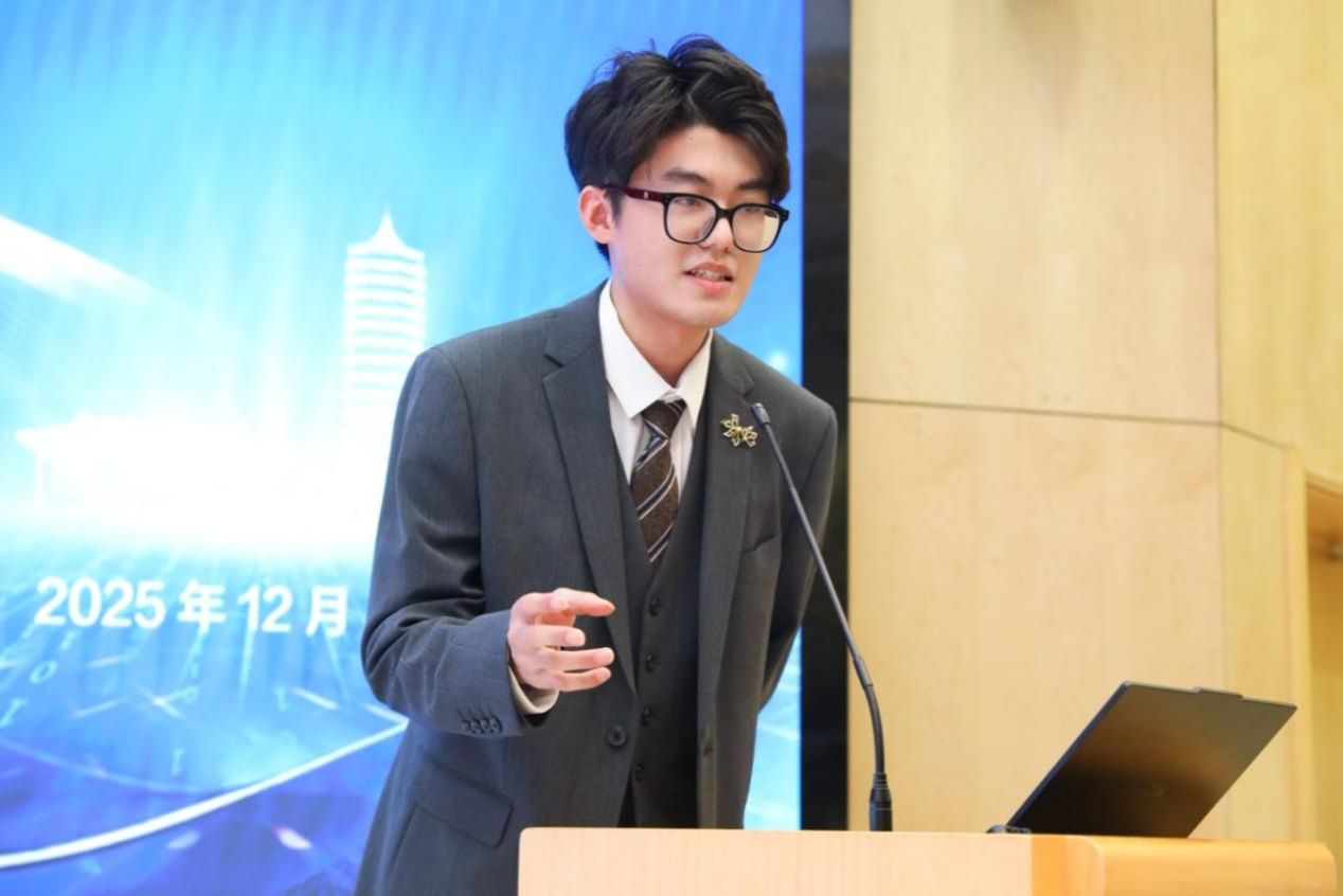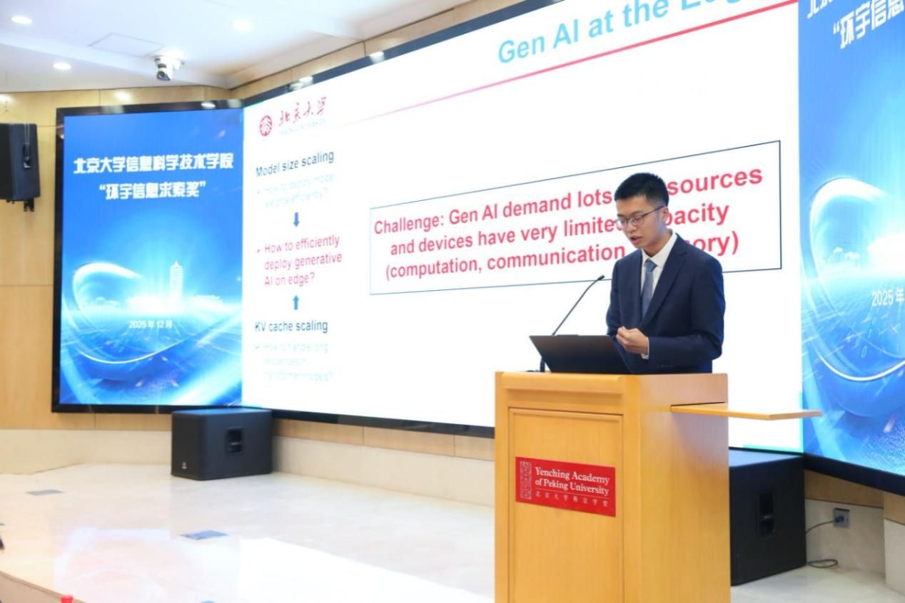 2022级应用物理学专业本科生黄浩宸围绕“面向边端场景的大模型高效推理”的主题进行答辩。通过软硬件协同设计,他践行了混合并行与动态调度的策略,也逐步建构起硬件-系统-算法的协同优化体系,增强了大模型在边端受限硬件下的可落地性。