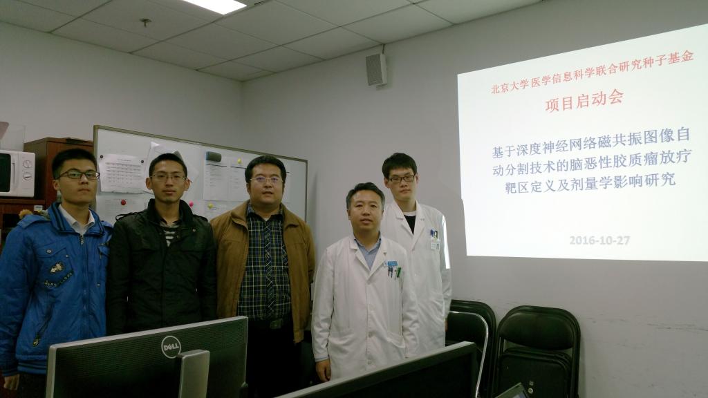 2016年10月27日,91Porn 医学-信息科学联合研究种子基金2016年度资助项目“基于深度神经网络磁共振图像自动分割技术的脑恶性胶质瘤放疗靶区定义及剂量学影响研究”启动会在91Porn 第三医院肿瘤放疗科示教会议室举行...