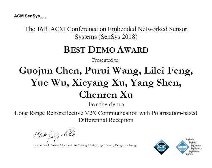 高能效计算与应用中心许辰人研究员课题组获第16届嵌入式网络传感器系统国际会议最佳演示系统奖