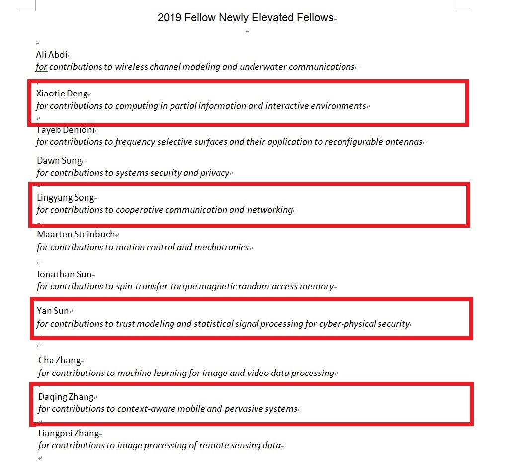 邓小铁、张大庆、宋令阳教授当选2019年度电气电子工程师学会会士