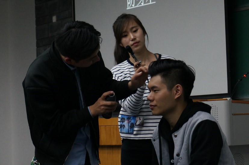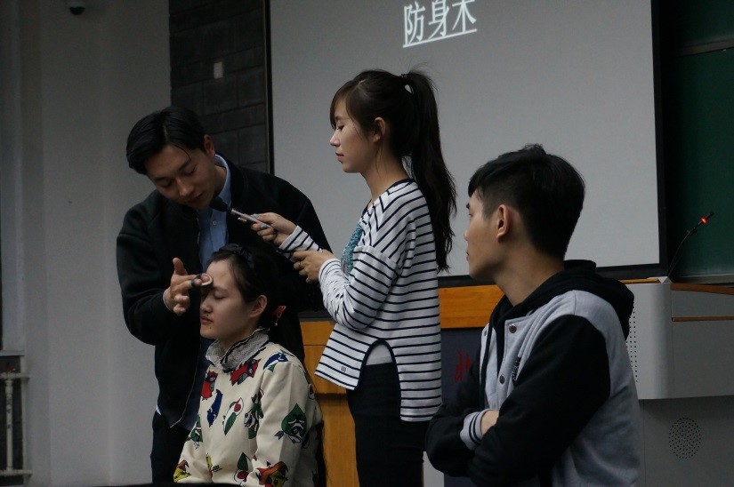 图1 主讲人现场挑选女模特进行化妆教学