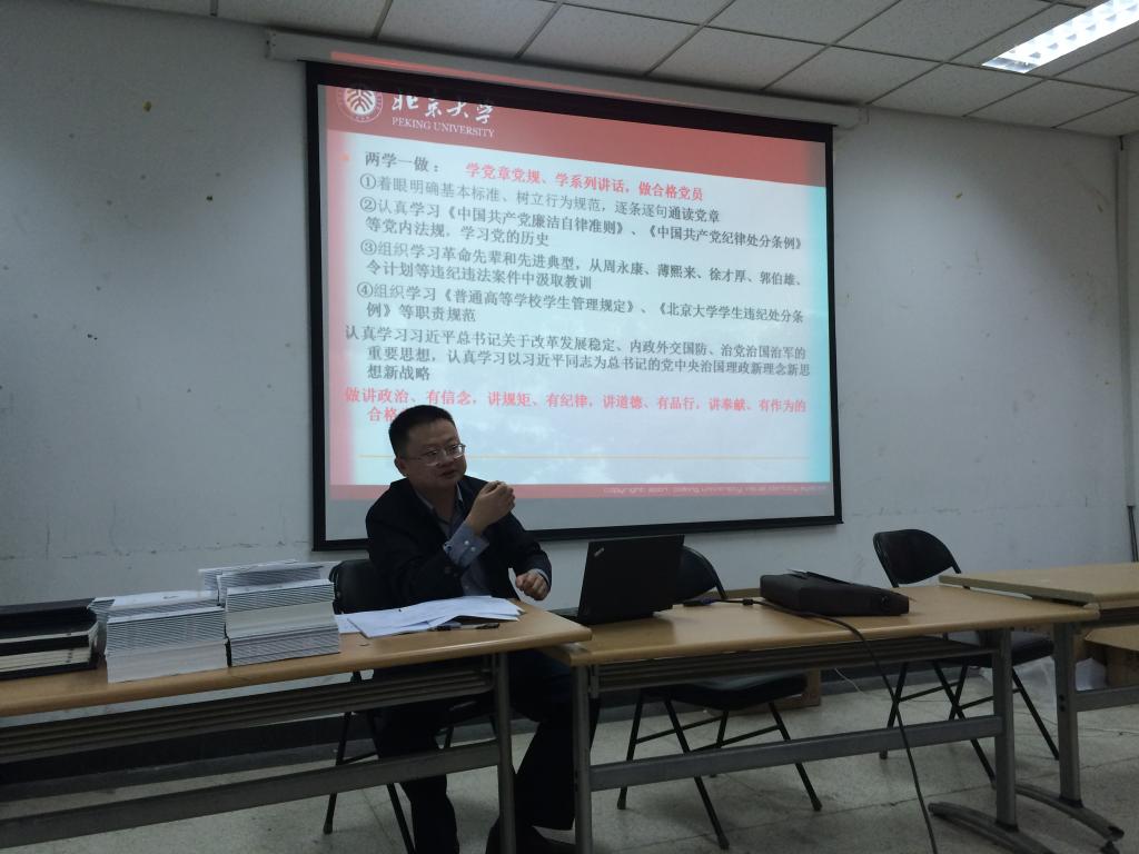 最后学工办副主任秦艳龙从支部设置、组织生活、换届选举、党支部规范化建设、活动立项、党员发展、党校培训等多个方面为大家进行了学生党支部工作流程、工作规范、工作意义的详细解读,为接下来支书、支委的规范工作奠定了基础。