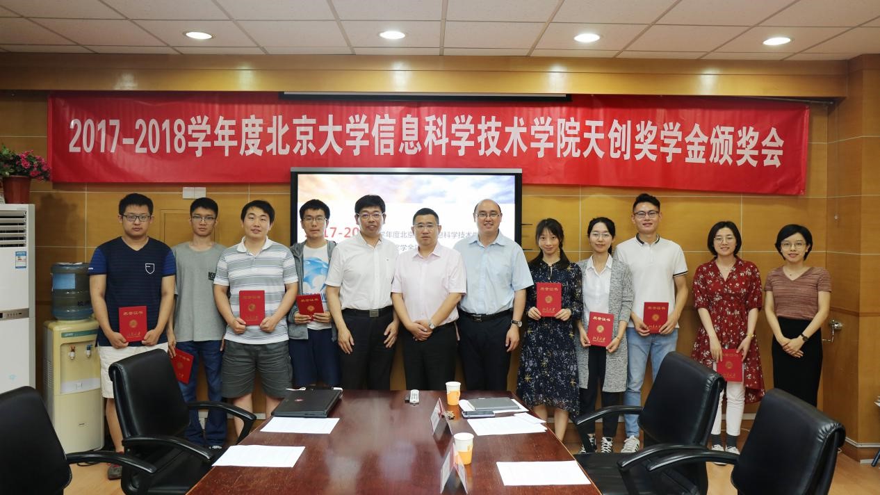 天创奖学金。周先生回顾了天创公司成立之初的经历,提出当前发展国内信息科学技术的重要性,希望北大学子能够投身于基础研发,为国家和民族产业作出贡献。周先生还提到,如有机会将邀请之前几届天创奖学金获奖学子和校友一同再聚、共畅未来,魏老师对此也表达了期许。