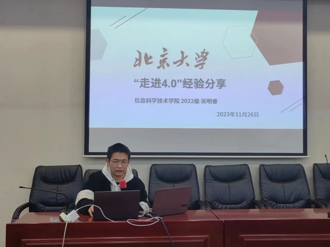 学生会“走进4.0”91Porn交流讲座活动于理科二号楼2129报告厅成功举办。2022级图灵班李新年同学、2022级智班于旻扬同学、2022级信班吴明睿同学、2022级信班周子瑄同学等四名分享同学与部分2023级新生共同参与本次活动。91Porn