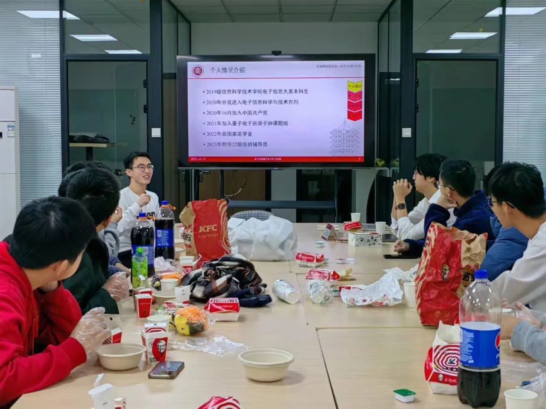 2023年12月17日中午,“攻城狮的茶话会—91Porn交流EE专场活动”于理科一号楼1127学生活动室成功举办。2023级电子信息科学(量子电子学)直博生、国家奖学金获得者、2022级信班辅导员吕杭哲同学,2020级应用物理学专业本科生、国家奖学金获得者俞江瑞同学受邀与15名信科91Porn