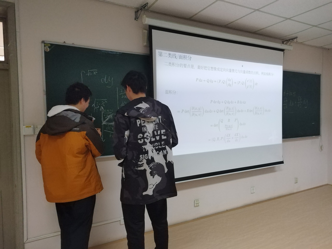 电磁学的辅导很有特色,讲师全程使用粉笔手写,对期中之前的内容进行了很好的复习,以及进行了一小部分的拓展,并邀请同学走上讲台一起深入探讨解题思路。