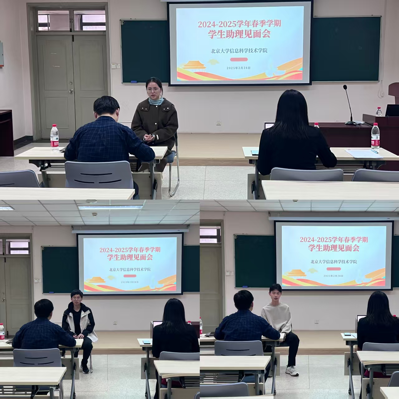 党委副书记贾方健、学工办主任李子奇、学工办干部付晓倩和报名本学期的学生助理们依次进行了面谈。