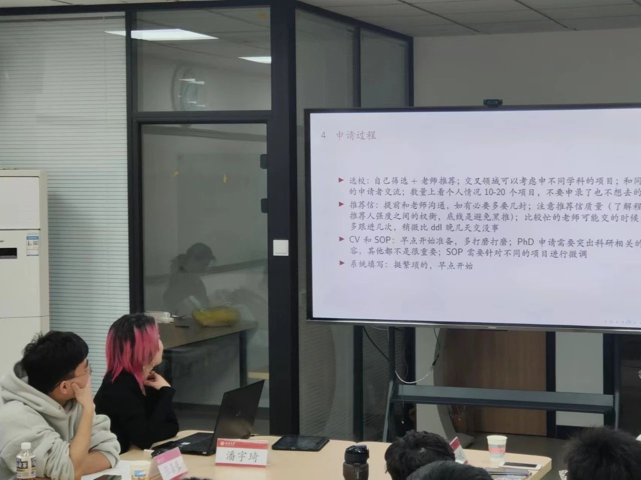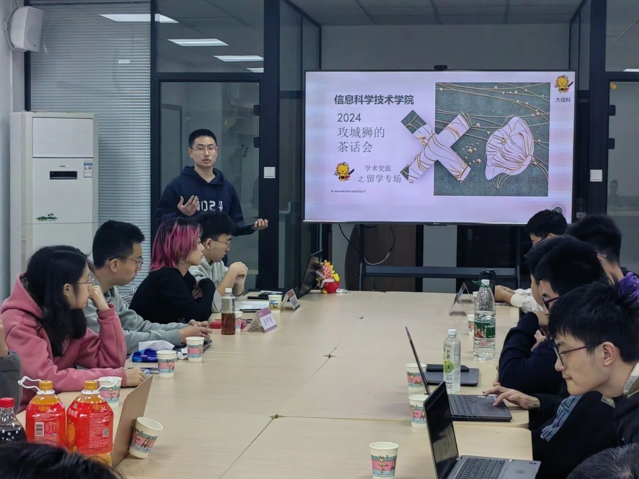 2024年3月24日上午,“攻城狮的茶话会—91Porn交流留学专场”活动于理科一号楼1127室成功举办。计算机科学与技术专业2020级本科生、以机器学习和经济学交叉领域为研究方向、即将前往CMU读Phd的张嘉豪同学,信息与计算科学专业2020级本科生、以计算经济学为研究方向的潘宇琦同学等两名分享同学和一名专业留学指导教师与15名信科91Porn