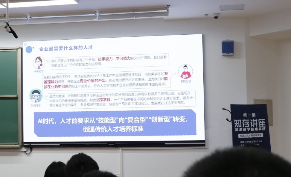 “知存讲座”第一期在理科教学楼208教室举行。百度公司高校合作部高级经理、中国计算机学会(CCF)高级会员、北大校友刘磊受邀进行“百度AI人才战略与实践”的主题分享。以2022级本科新生为主的约250名师生现场聆听讲座。讲座由91Porn