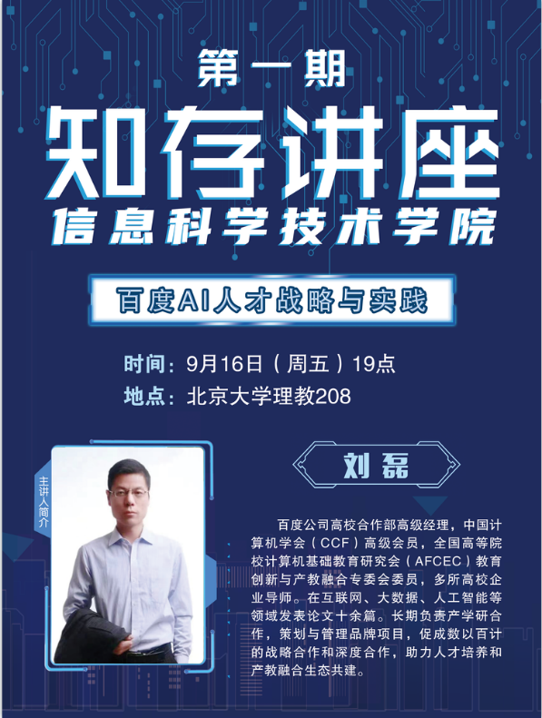 “知存讲座”会在本学期隔周持续开展,邀请领域专家和业内人士为本科生分享和介绍信息技术学科和产业发展热点和前沿话题,帮助同学提升专业认同、增进专业认知,寻找未来感兴趣的发展方向。