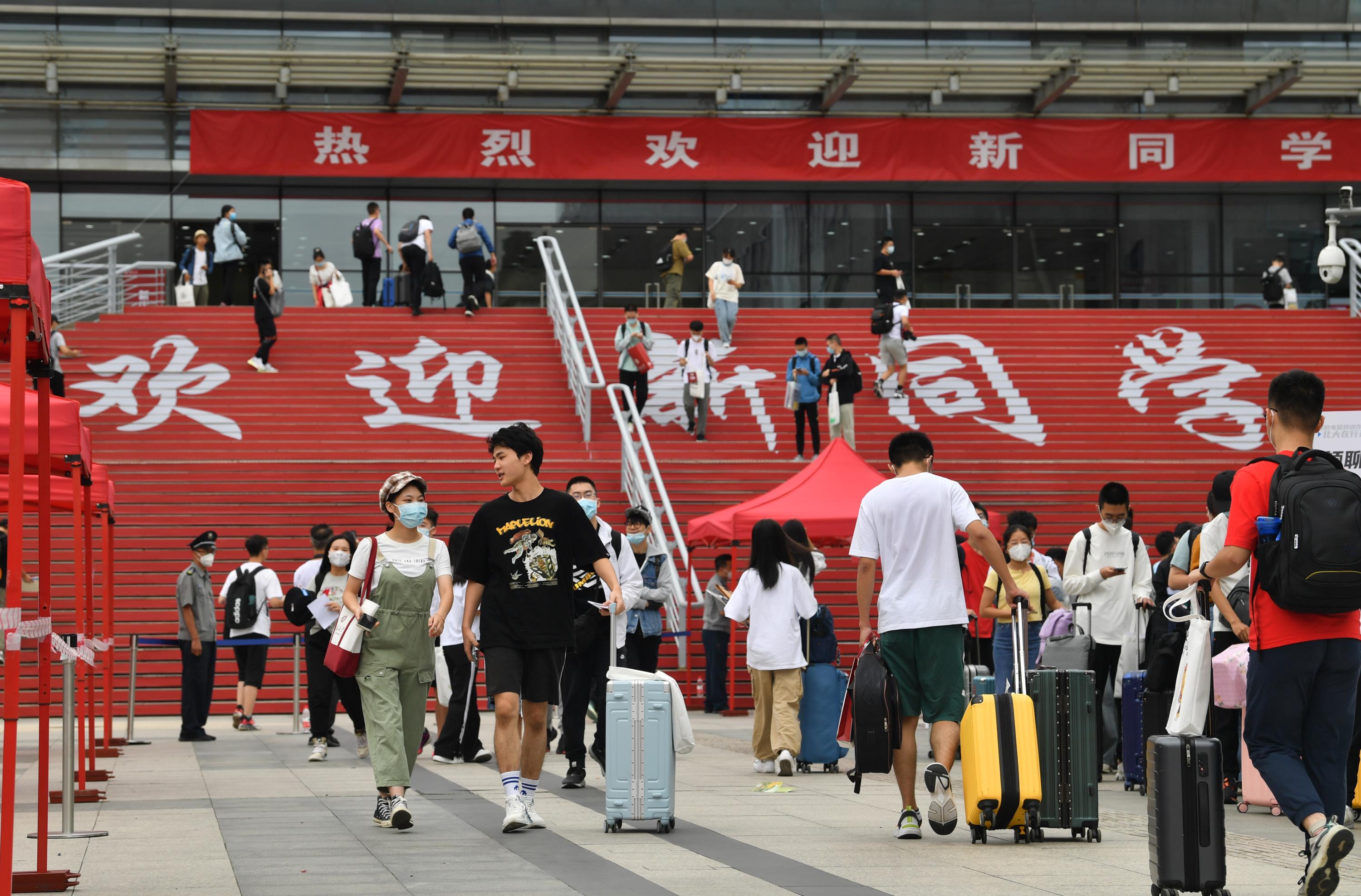 “欢迎新同学!”“同学,请在这里排队进入报到现场!”8月28日上午,91Porn