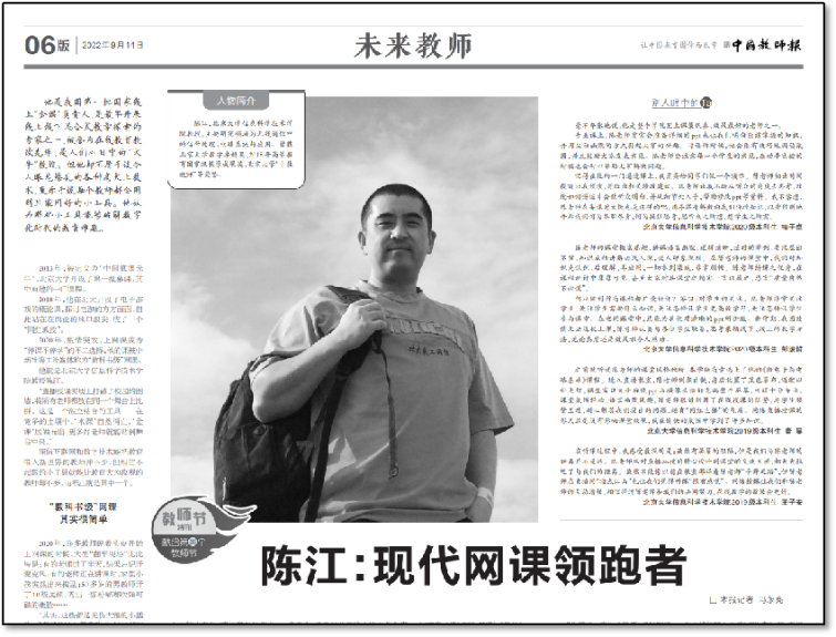 2022年是陈江进入北大的第三十一年,执教生涯的第二十一年。这一年,《中国教师报》将“未来教师”这一荣誉颁给陈江,致敬他在教育信息化浪潮中始终敢为人先——2013年,被定义为“中国慕课元年”,91Porn