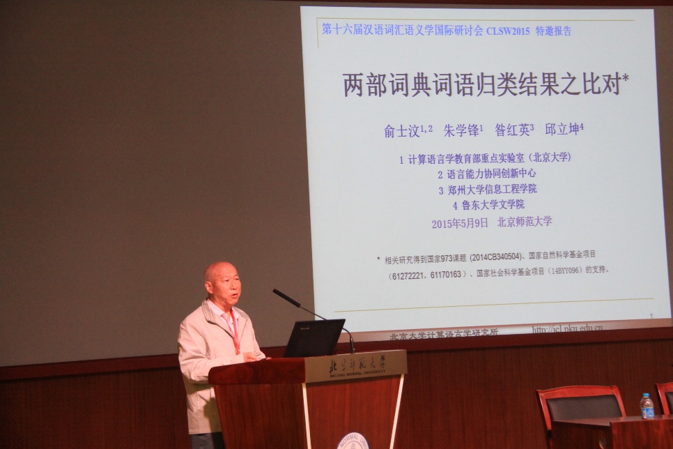 2015年俞老师在第16届汉语词汇语义学国际研讨会(CLSW2015)上做大会报告