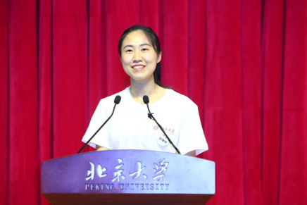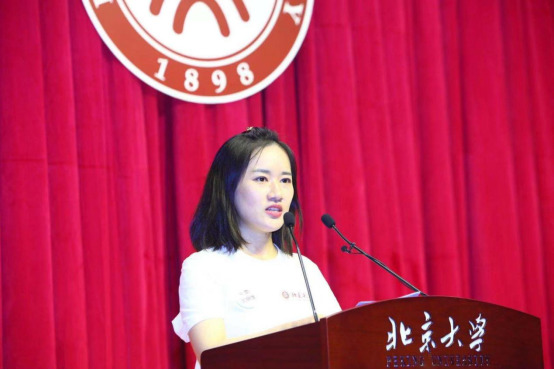 最后,新生代表、2021级博士生张雅坤发言。她认为北大学子理应作为新时代中国青年的先锋,肩负起时代的重任。她分享了三点体悟与大家共勉:转换思维、快速适应,放平心态、从容向前,以及内外兼修、全面发展。在拥有世界一流的教师团队、广阔的实践平台、丰富多彩的学生活动的校园中,应当立鸿鹄之志,做栋梁之才,把激昂的岁月融入科研的探索,将飞扬的青春刻进中华民族伟大复兴的中国梦。