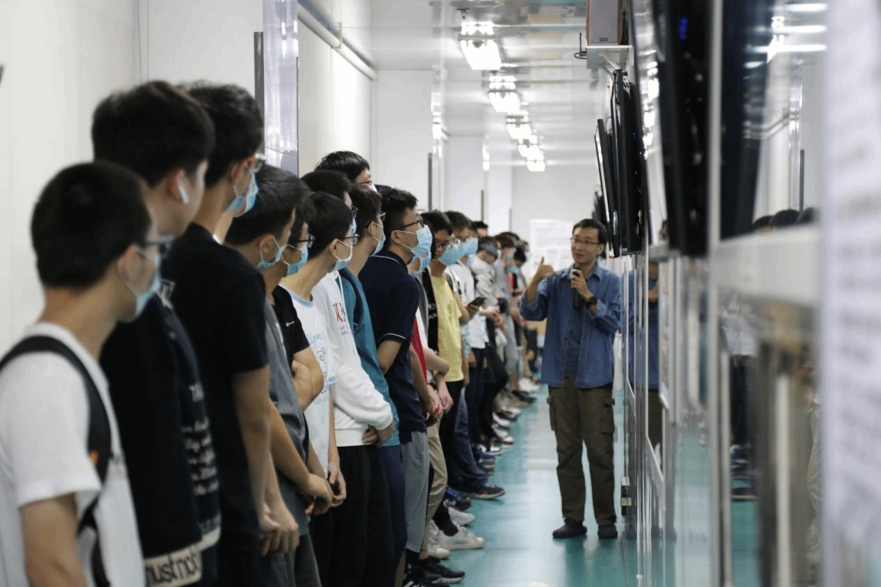 大会结束后,同学们有序参观了微纳电子大厦的超净间工艺实验室,并与在座老师们就学习、科研和日常相关问题进行了热烈的讨论。最后,新同学们在系楼门口合影留念,手持写有“肩负使命强芯兴国,奋斗终生矢志不渝”“少年志,中国‘芯’”等的标语牌,用青春笑脸迎来新的学习生活。