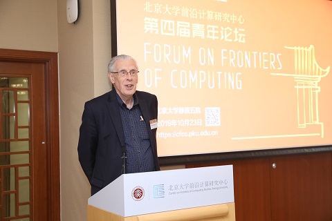 外籍院士 John Hopcroft 教授代表中心欢迎大家的到来。他比较了中美两国在学生培养上的差异,介绍了在北大成立前沿计算研究中心的背景和初衷,高度肯定了北大学生的优异表现,欢迎更多优秀的教职人员加入中心,并对中心的未来发展寄予厚望。