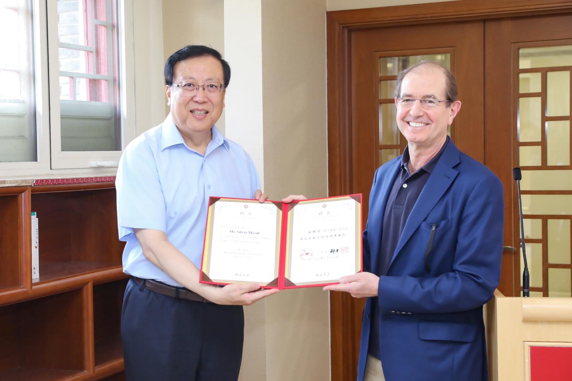 郝平为米卡利教授颁发聘书