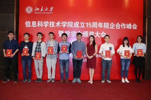各项奖学金的同学颁发了荣誉证书。腾讯、微软、阿里巴巴、google等合作企业,高通、普联、斐讯、华为、品友互动、天创、上海万革始等奖学金捐赠企业分别作了企业风采展示。