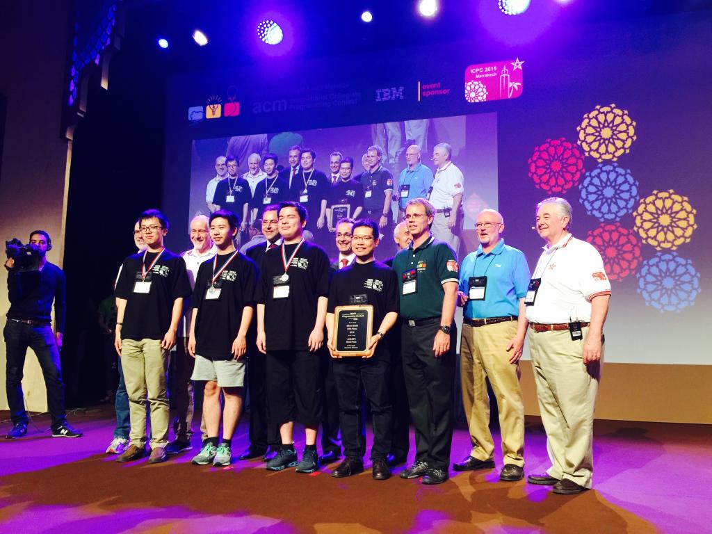 代表队夺得了全球第5名的优异成绩,并因在开场第5分钟作为解出第一道题目而获得Upsilon Pi Epsilon计算机科学荣誉协会(UPE Computer Science Honor Society)颁发的全场最快解题奖(UPE first solution award)。
