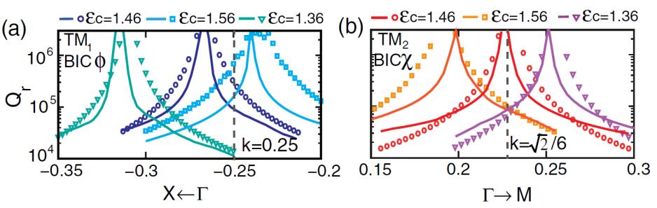 图2. (a), (b)非Gamma点光连续区束缚态的可调谐性
