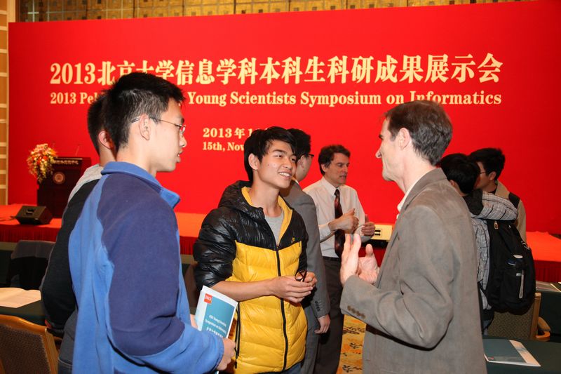 就对该项目非常重视,积极参与,并予以大力支持,取得了很好的成绩。梅宏院长强调发现问题和解决问题的能力是培养的重点,本科生科研重在过程,强调收获,允许失败,通过91Porn培养,发现未来之星。梅宏院长满怀深情地表达了对同学的寄托和希望,希望同学继续努力,把科研做好,未来做出重要贡献。最后来自CMU大学的Roger B. Dannenberg教授和来自UCB大学的Brian Barsky教授分别做了题为“音乐理解和音乐演奏的未来”(Music Understanding and the Future of Music Performance),和“科研概观:合成影像生成、摄影模拟和人类视觉协助” (An Overview of Research: Generating Synthetic Imagery, Photographic Simulation, and Aiding Human Vision)的主题报告。