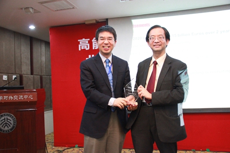 Jason Cong为Wayne Luk教授颁发水晶牌