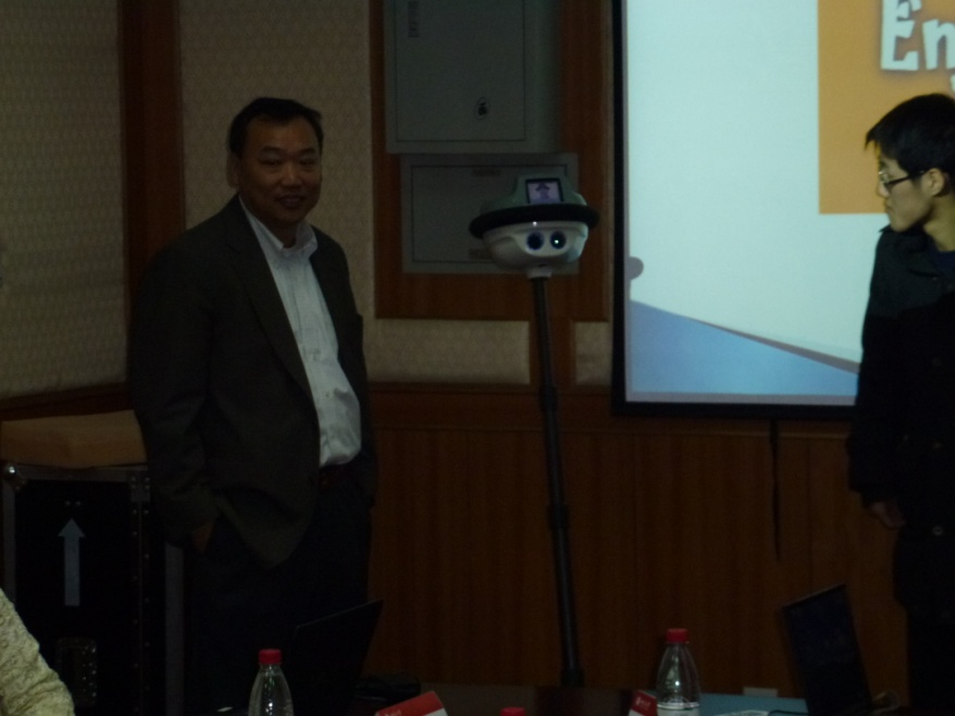 客座教授Daniel也分享了自己创业和投资的经验。期间,美国风险投资公司Y Combinator的创始人之一Trevor Blackwell通过WIFI控制其公司生产的智能机器人远程参与互动交流,现场热烈的氛围将活动推向高潮。