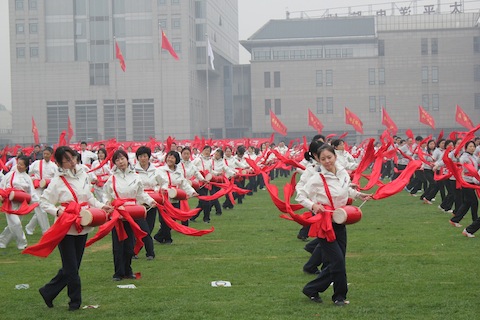 此外,作为开幕式的一部分,我院数十名教职工参与了团体操腰鼓的表演。为此,近一个多月中,各位老师在繁忙的工作之余,刻苦排练,为表演做好准备。表演时,在欢快喜庆的乐曲声中,老师们精神抖擞,激情洋溢,用整齐的动作、优美的姿态展现了教师们身上的活力,他们的表现也得到了全场观众的赞许。