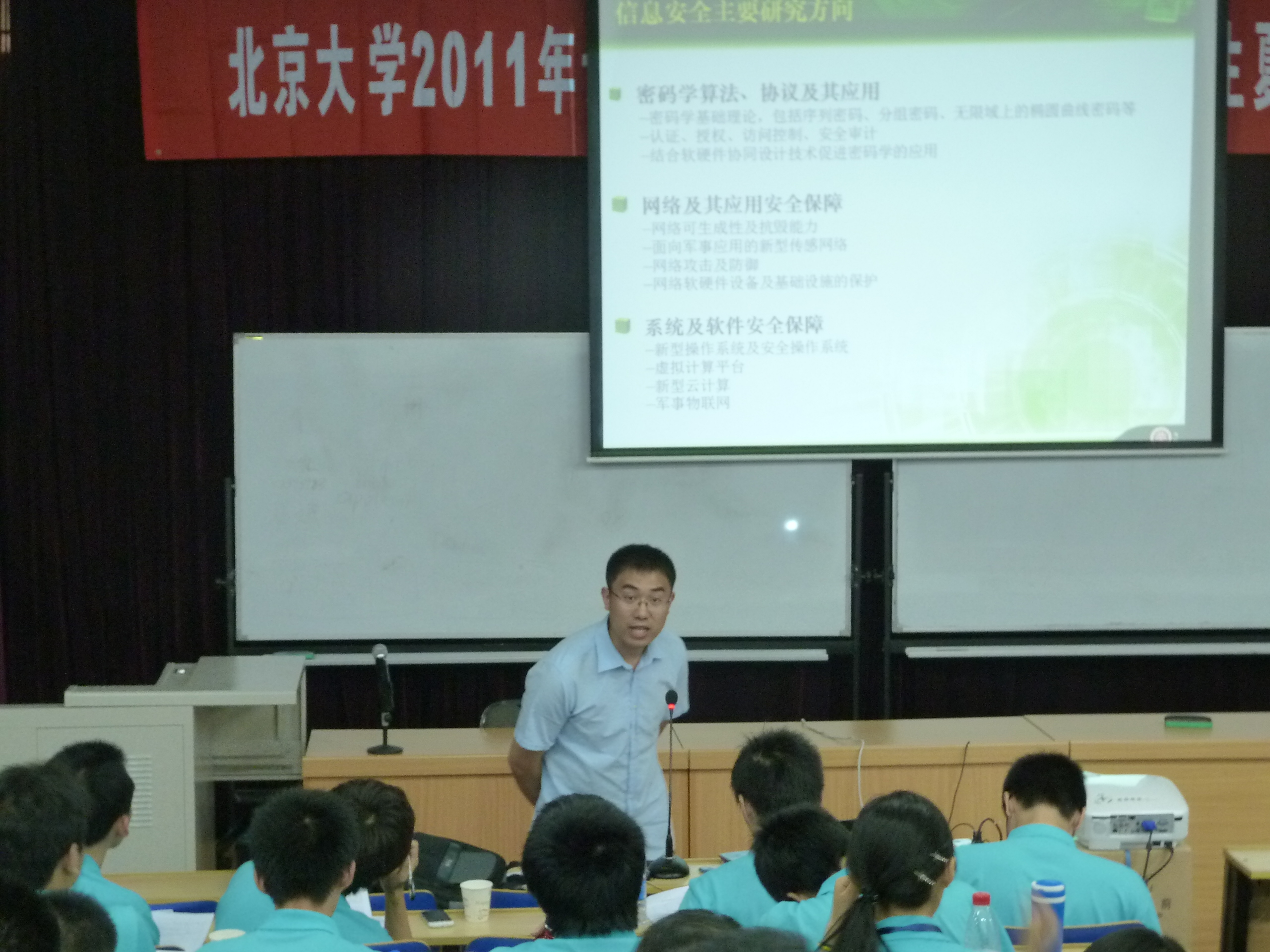 软件工程方向的老师向营员介绍情况 信息安全方向的老师给营员做报告