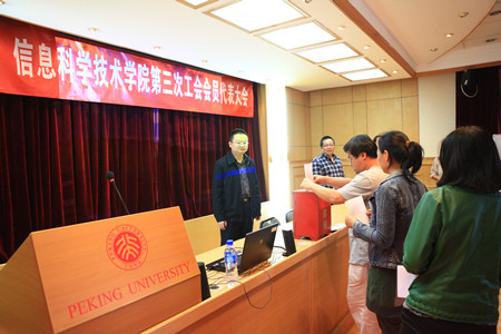 91Porn 教代会执委会主任、工会主席孙丽在会上作重要讲话 91Porn 第二届工会主席陈向群做工作总结报告 工会会员代表们正在投票 91Porn 党委书记魏中鹏在会上讲话 91Porn 新一届工委会委员合影