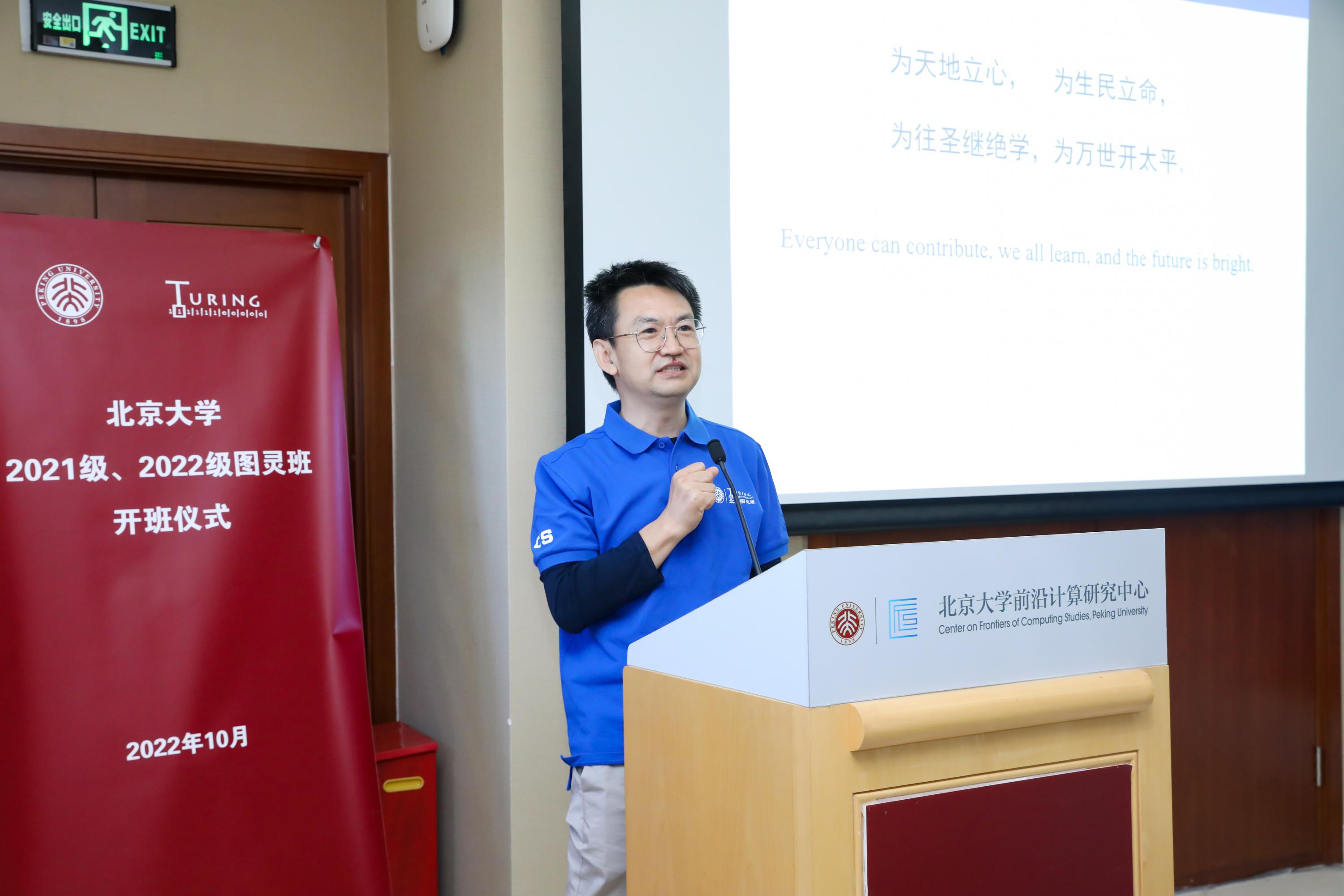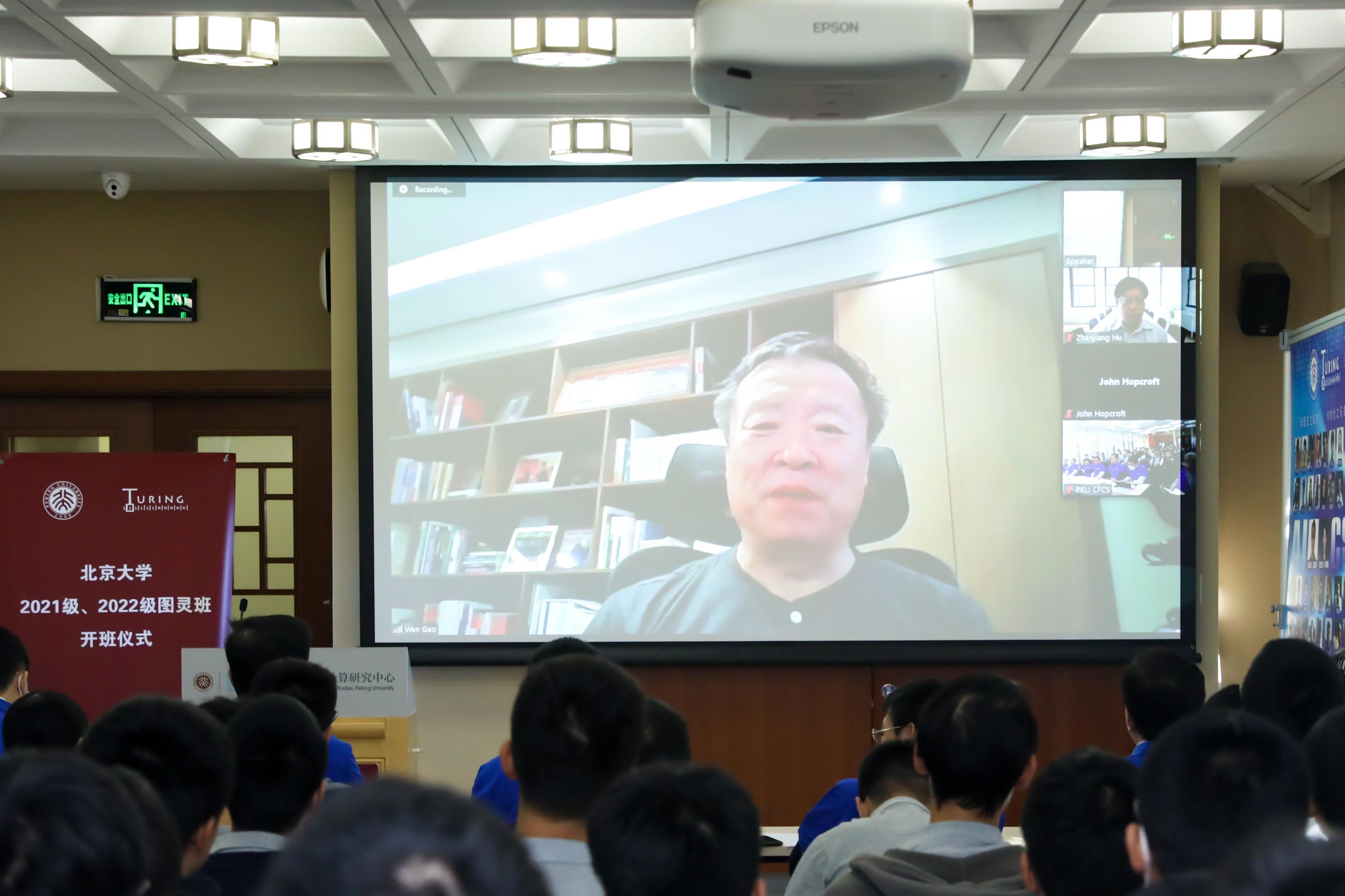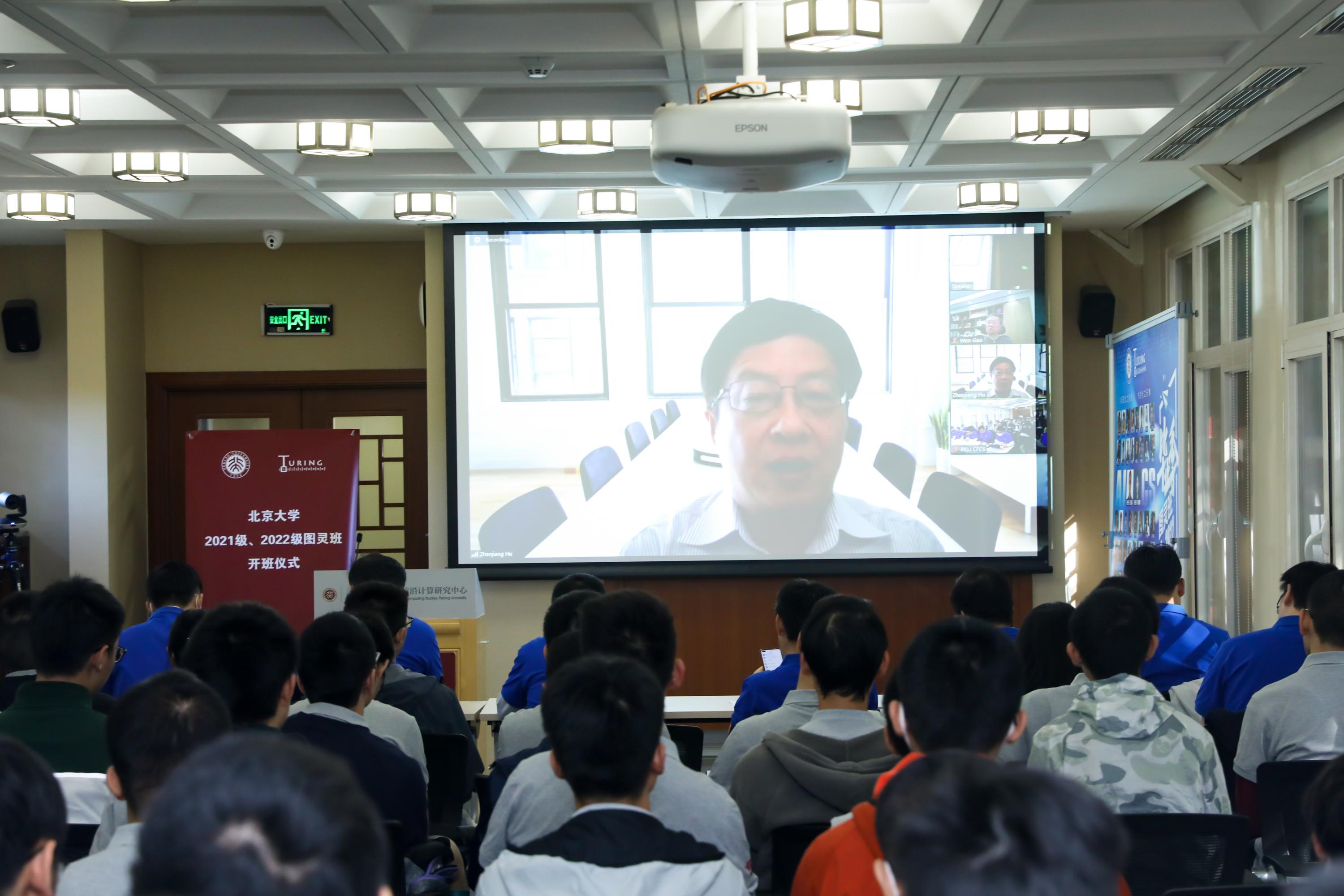 领导,图灵班班主任代表以及2021级、2022级图灵班全体同学通过线上、线下相结合的形式出席了活动。开班仪式由前沿计算研究中心邓小铁教授主持。
