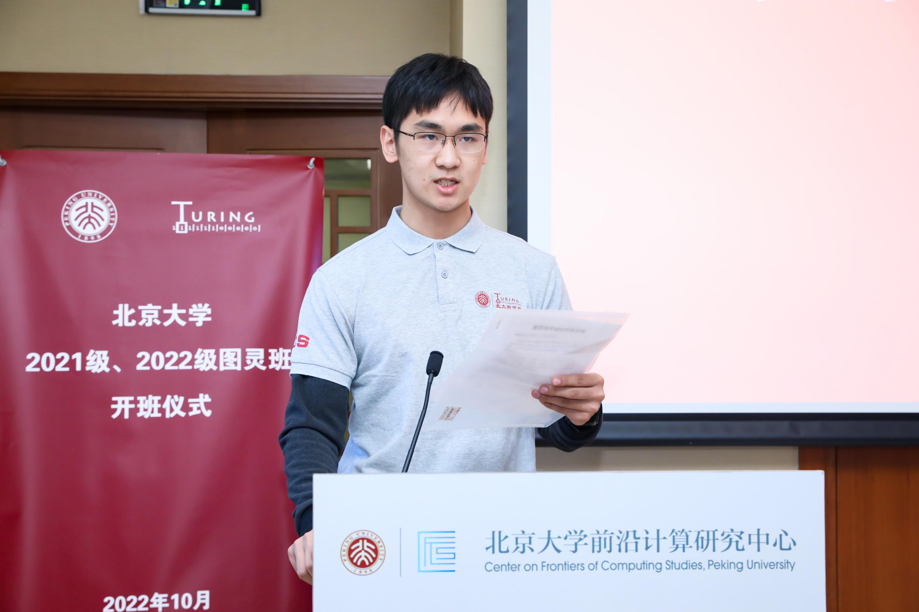 两位图灵班新生代表分享了他们入选图灵班的憧憬与喜悦。2022级的张记僖同学期待和大家乘风破浪、努力奋进,用自己所学知识建设祖国。2021级的蒋轩林同学感谢图灵班这样一个跨越年级、代代传承的集体,希望未来也能够为学弟学妹答疑解惑,为图灵班的建设贡献自己的一份力量。