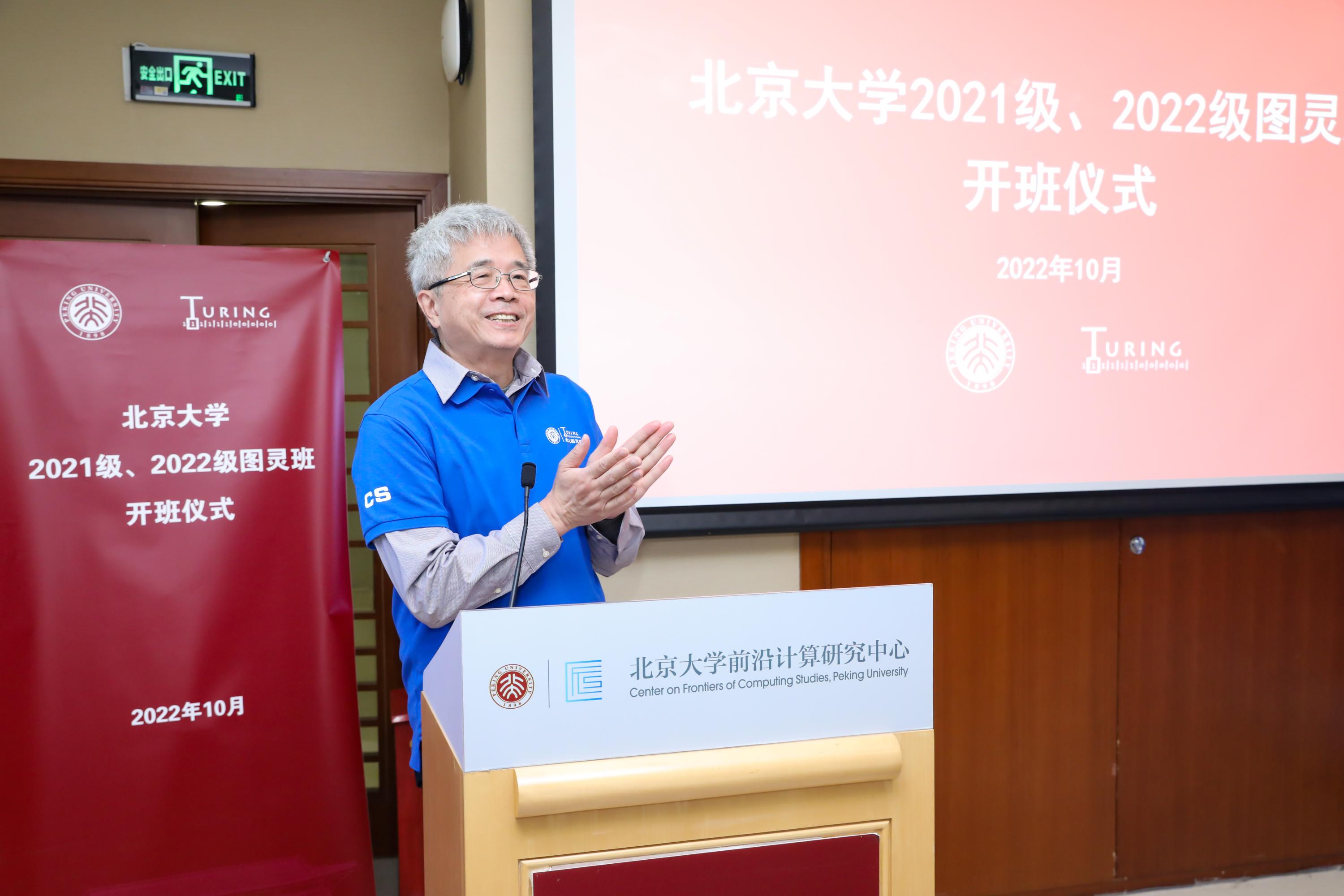 拔尖计划2.0的优秀案例,有图灵奖得主的引领、先进的课程体系、老师的精心培育、新老同学的互动,为同学们未来的发展奠定了良好基础。他希望同学们立志高远、志趣明确,加强基础、勇于创新,体魄健全、引领未来,充分利用北大提供的优质资源,应用所学知识,解决关键问题,希望未来从图灵班走出引领计算机学科发展的卓越人才。
