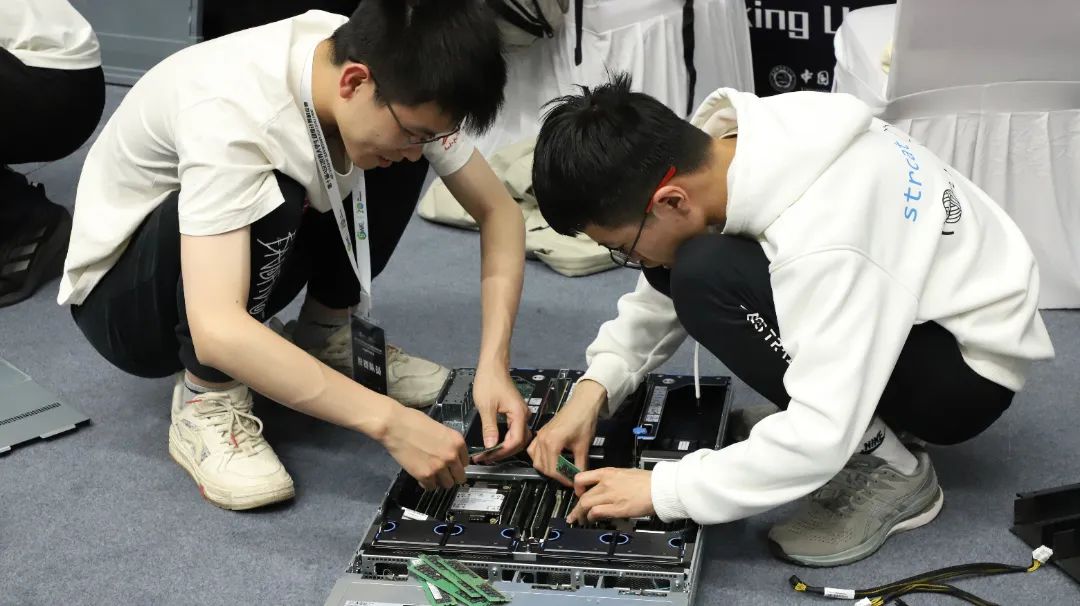 决赛要求各参赛队伍在3000W功耗约束下自行设计并现场搭建超算系统,赛题聚焦AI语言大模型、AI for Science、水文模式等前沿科学领域。总决赛期间,24支队伍还通过抽签分组形式完成超级团队赛,通过跨团队、跨地域合作,共同完成 “超级”赛题,在合作中增进友谊,在交流中迸发灵感。