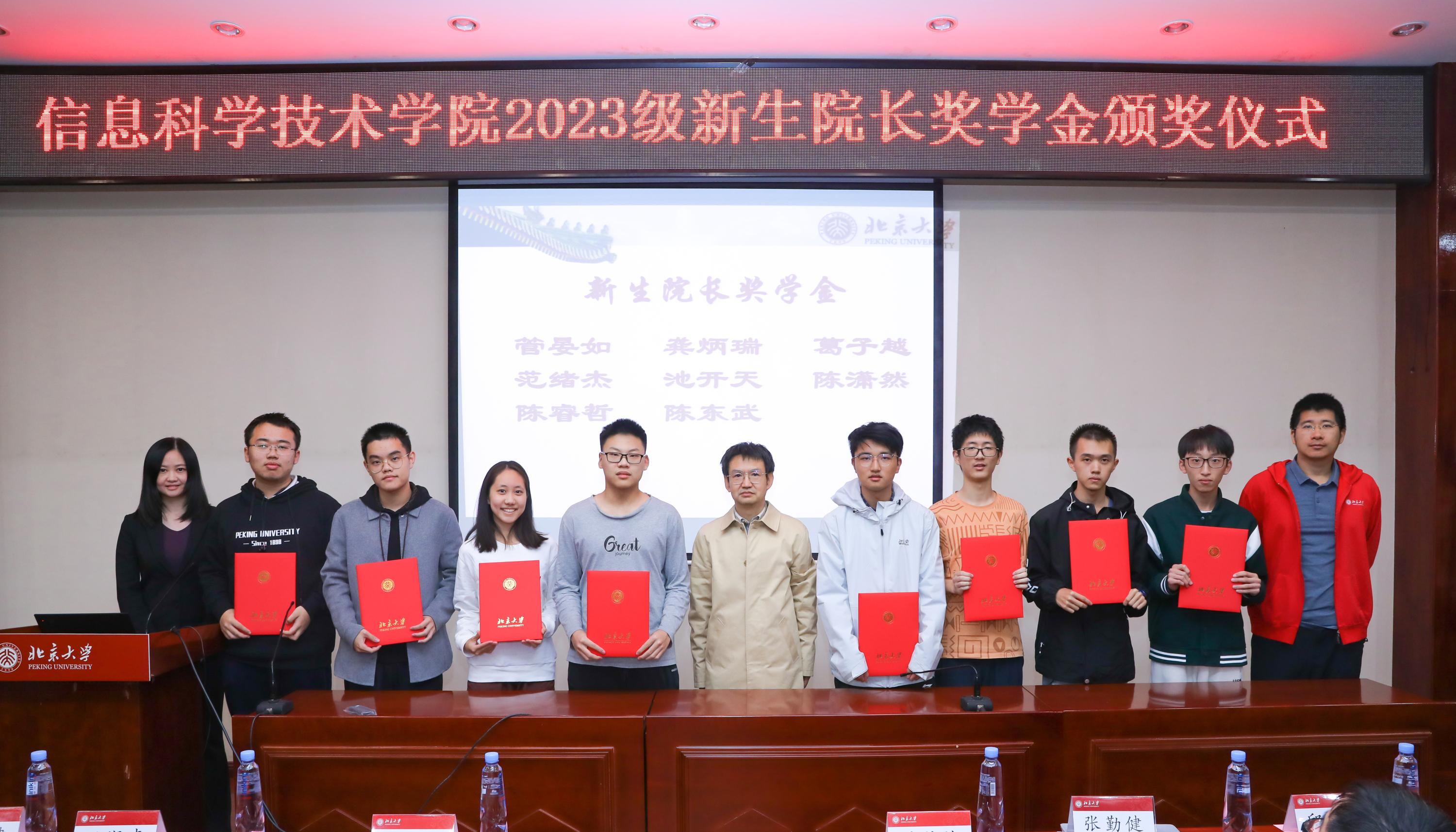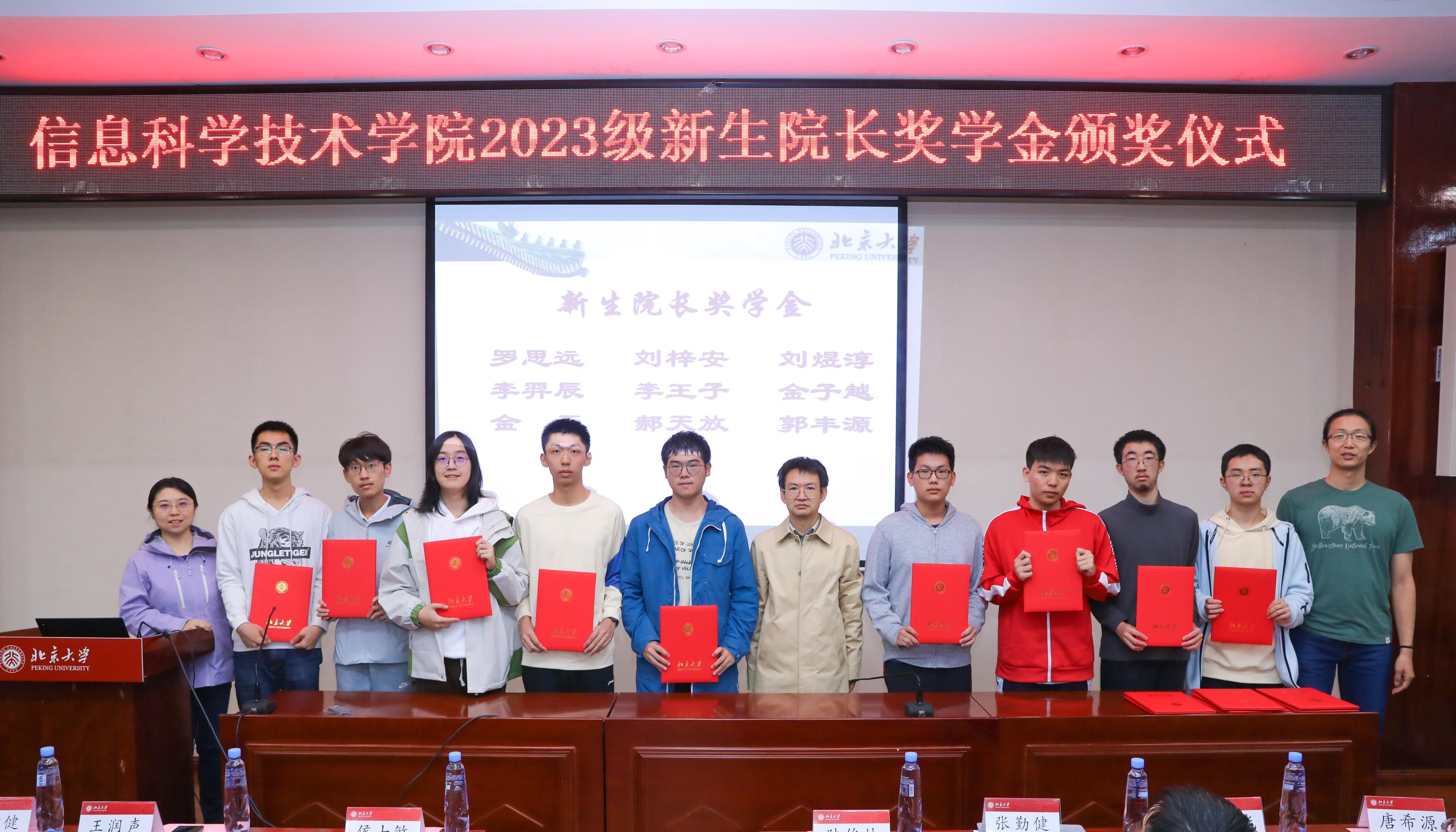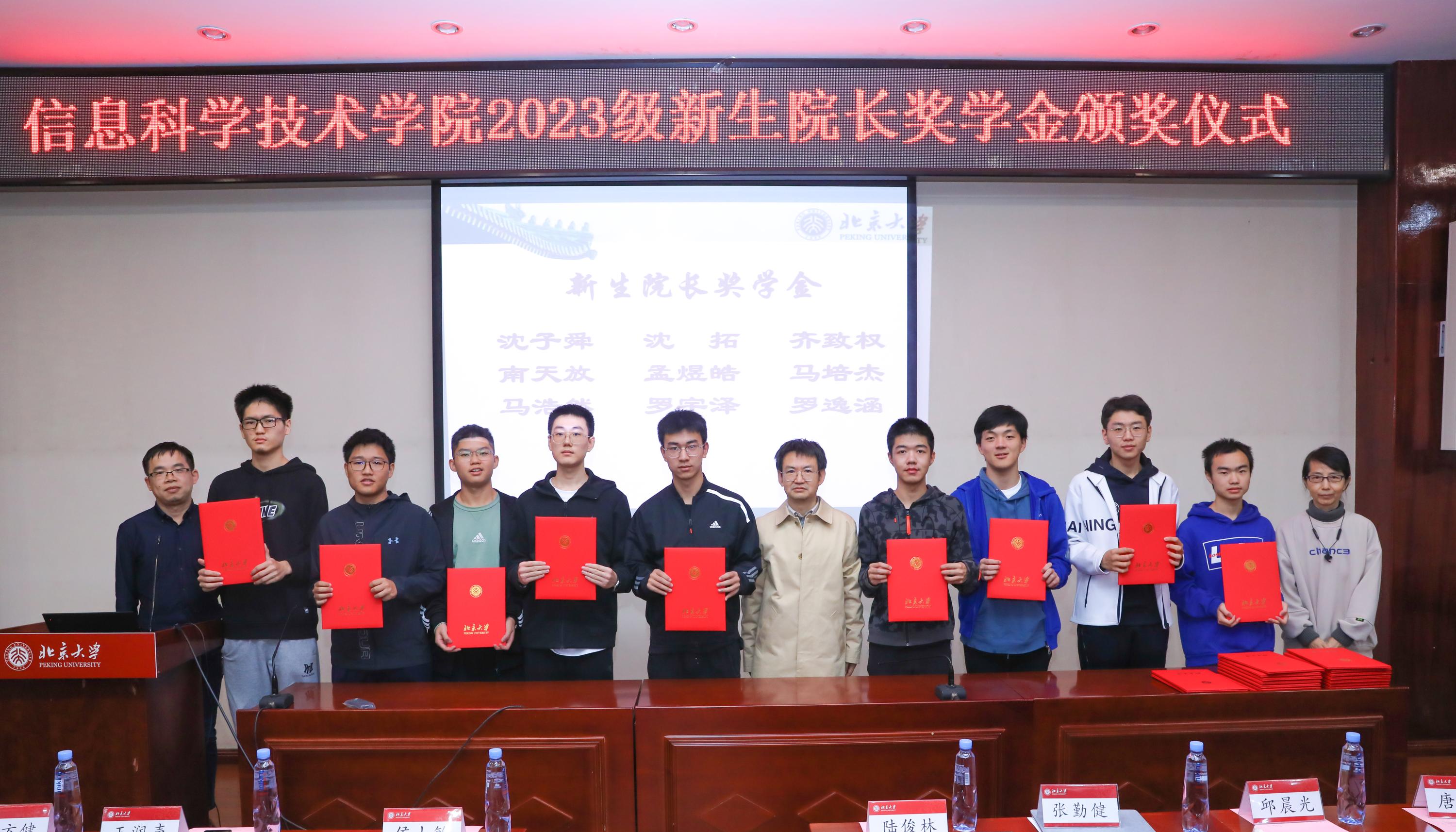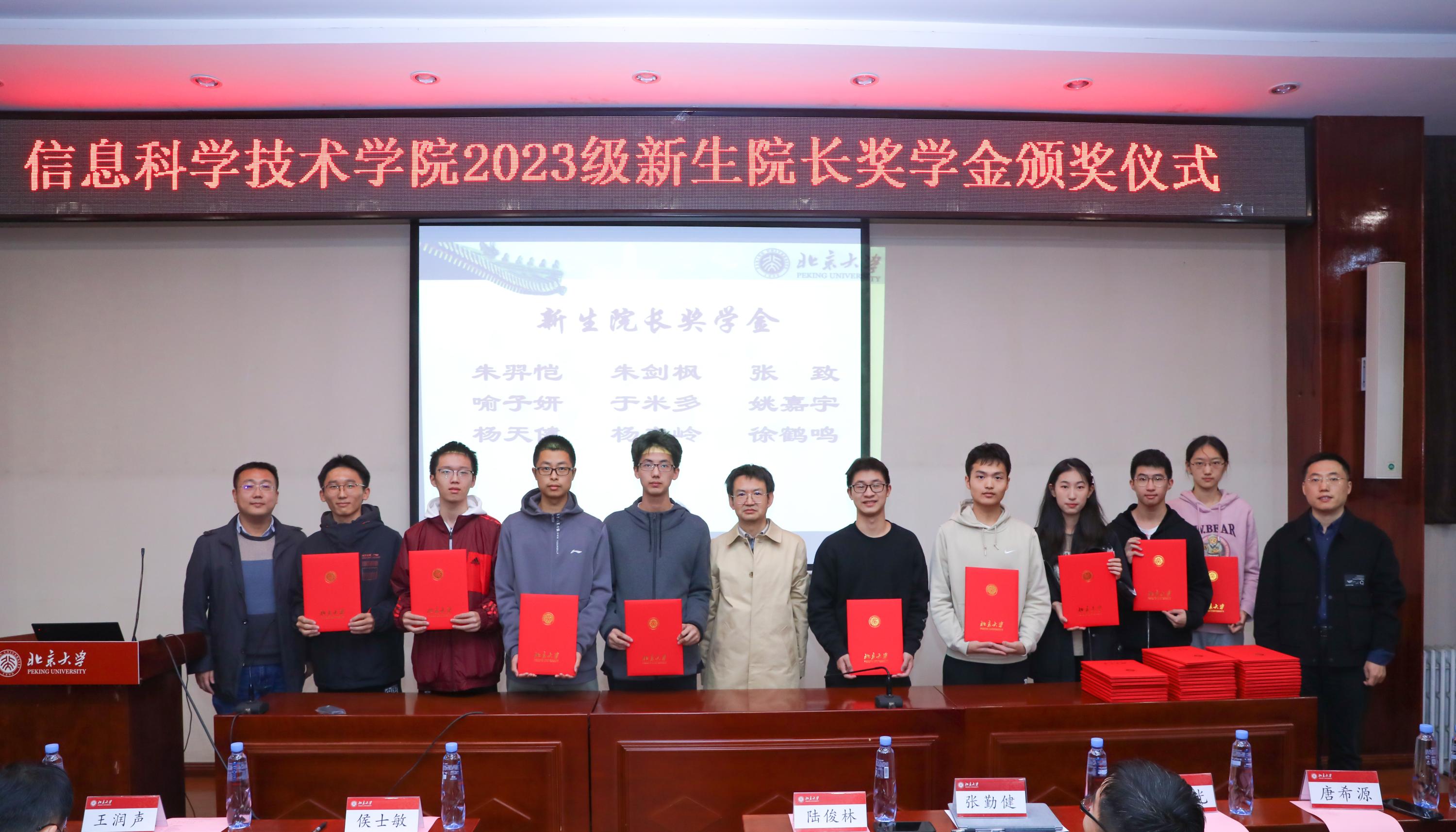 领导老师为获得2023级新生院长奖学金的学生颁发获奖证书并集体合影。
