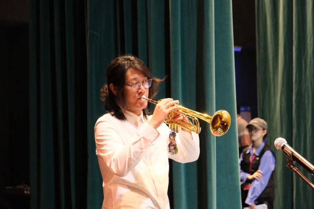 在台上,尽管在排练时已经听过无数遍开头的伴奏,但当共青团团歌在钢琴、小提琴与小号的协奏中悠然奏响,心中还是会为之澎湃激荡。那是初生的共青团,是那时中国先进青年的聚集处,如朝阳为旧中国带来曙光。伴着阵阵歌声,大家仿佛清晰地看到1935年走上街头示威游行的学生们,真切地感受到他们心中熊熊燃烧的爱国热情;舞台组同学们的表演则用充满力量与希望的舞蹈动作传达出“点点星火汇成璀璨星辰”。历史的车轮缓缓向前,在这百年的时光里,同学们好像看见千千万万坚守在平凡岗位上的英雄燃烧自己的青春年华,铸就今日之中国的灿烂辉煌。“我是朝阳,我是屏障“,同学们将时刻准备着,接过那汇聚着万千热血的初衷,唱响属于新时代中国的强国之音。一曲《有我》在高亢嘹亮的小号声中结束,但小狮子们却沉浸其中,歌词旋律在耳边萦绕,久久不能散去。