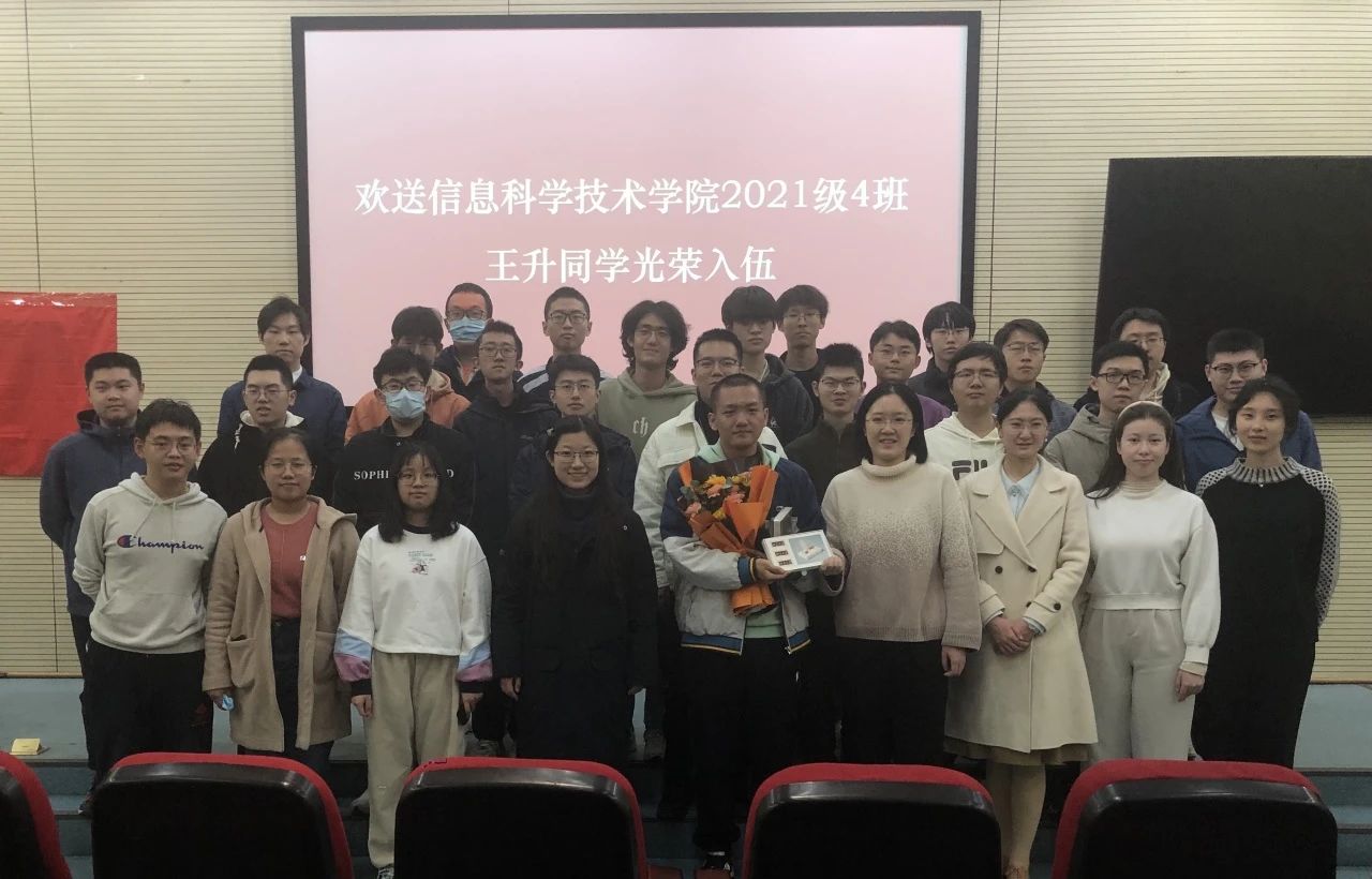 去年3月,在学校武装部的指导帮助下,4班的王升同学携笔从戎,光荣成为中国人民解放军海军的一员,将对祖国的热爱转化为投身军营的生动实践。他身上闪烁着的也是每一个4班青年最纯真最深沉的家国情怀。
