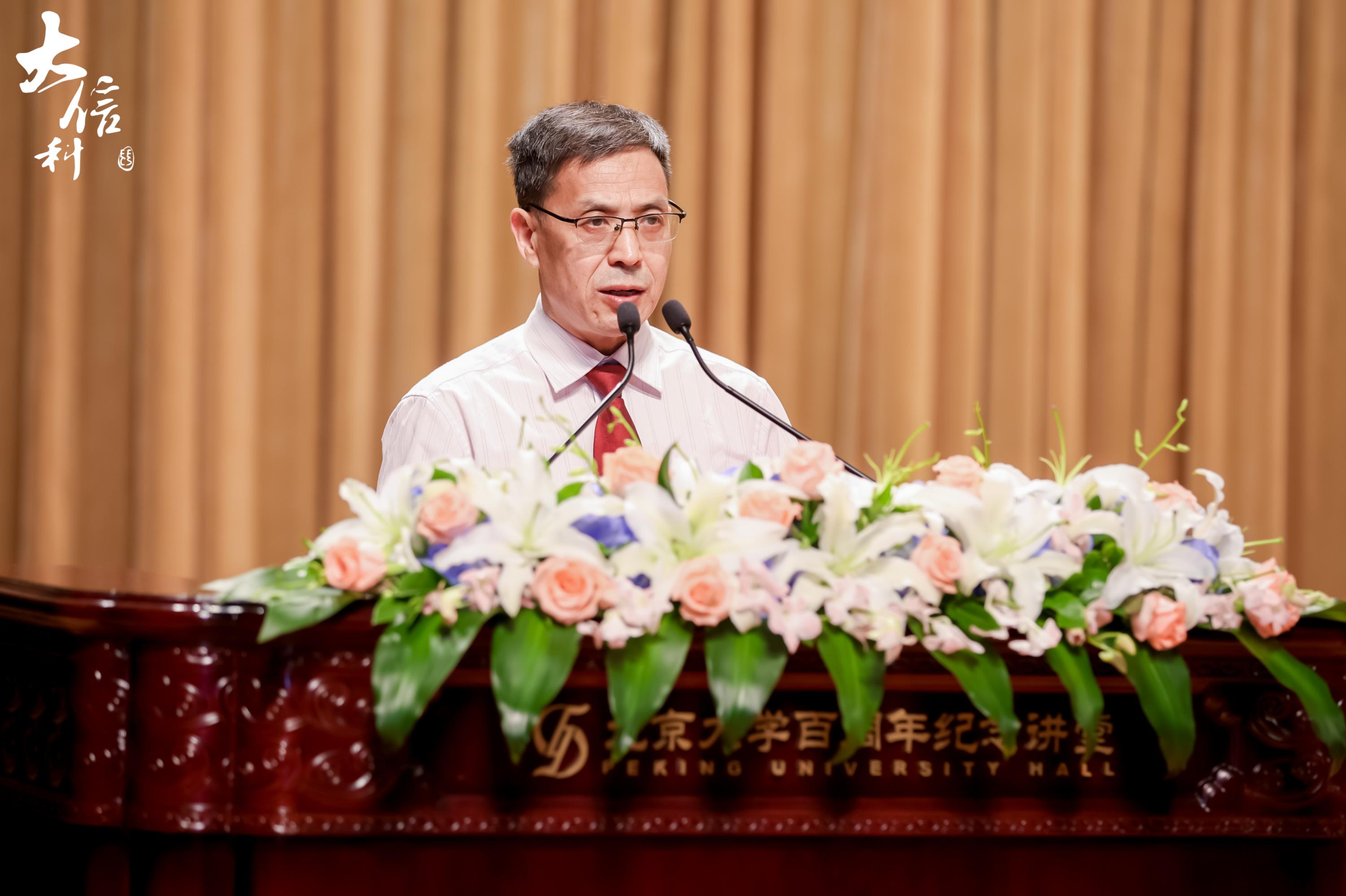 侯士敏院长首先向2024届毕业生致以衷心的祝贺。他引领大家回顾了燕园四年中重要而难忘的青春回忆,称赞大家的专业、热情和奋勇担当。他讲到,国家的建设与发展需要青年的努力与奋斗,建设科技强国、实现高水平科技自立自强更是“大信科”青年人的使命担当。对于即将面对的未来新挑战,侯士敏院长提出三点期望:一是希望大家大道如砥、初心不怠;二是希望大家迎难而上、开拓进取;三是希望大家关注内心、幸福充实。最后,他祝愿同学们一帆风顺、前程似锦,开启新的人生篇章。