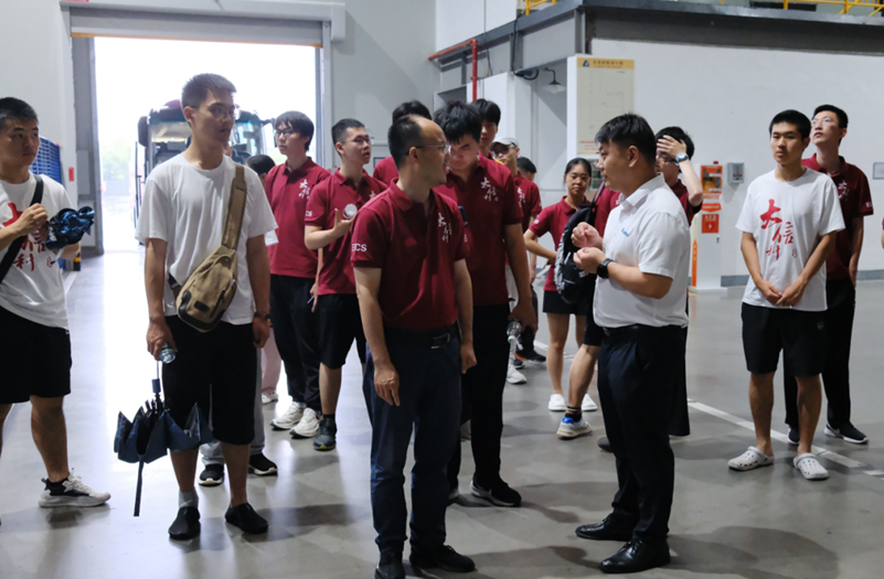随后同学们来到了蓝黛科技公司进行参访。走进生产线,同学们对动力传动业务和触控显示业务的应用与发展有了直观的认识。在动力传动业务方面,讲解员向同学们介绍了公司的主导产品,包括汽车变速器总成及其齿轮轴等零部件、新能源减速器及新能源传动系统零部件等,并进一步展示了这些产品在燃油乘用车、商用车、新能源汽车行业三大门类的应用与延伸。在触控显示业务方面,同学们了解了触摸屏及触控显示一体化相关产品的研发、生产和销售过程与其在信息终端领域的应用。此外,公司还向同学们简要介绍了公司的产业建设布局与未来的发展方向,让同学们对公司的未来发展有了更加全面的认识。