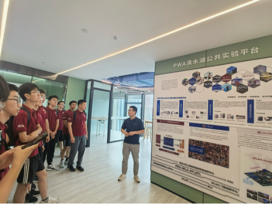 在北大临港科创中心,实践团先实地探访了PWA滴水湖公共实验平台。该平台聚焦生物领域,为初创技术研发机构和小规模企业提供共享的实验资源,解决初创阶段设备购置成本高的问题。同时,也为青少年提供难得的进入实验室的机会。这种科技产业发展模式令我们耳目一新,深受启发。