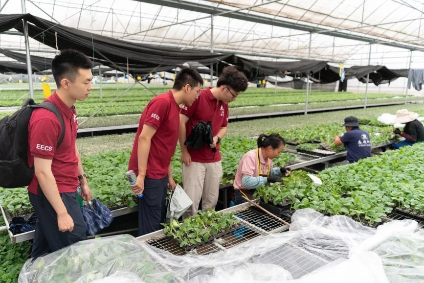 7月12日上午,实践团探访了弥渡的特色产业。同学们首先来到的是百利春晓种苗产业基地。跟随着相关负责人的脚步,同学们调研了种苗产业的发展情况并且近距离观看了种苗的嫁接工作,同学们也都对嫁接这种有趣的育种方法很感兴趣。在燥热潮湿的大棚中,工人们心无旁骛地处理着嫁接工作,这种严谨认真的工作态度,令同学们肃然起敬。