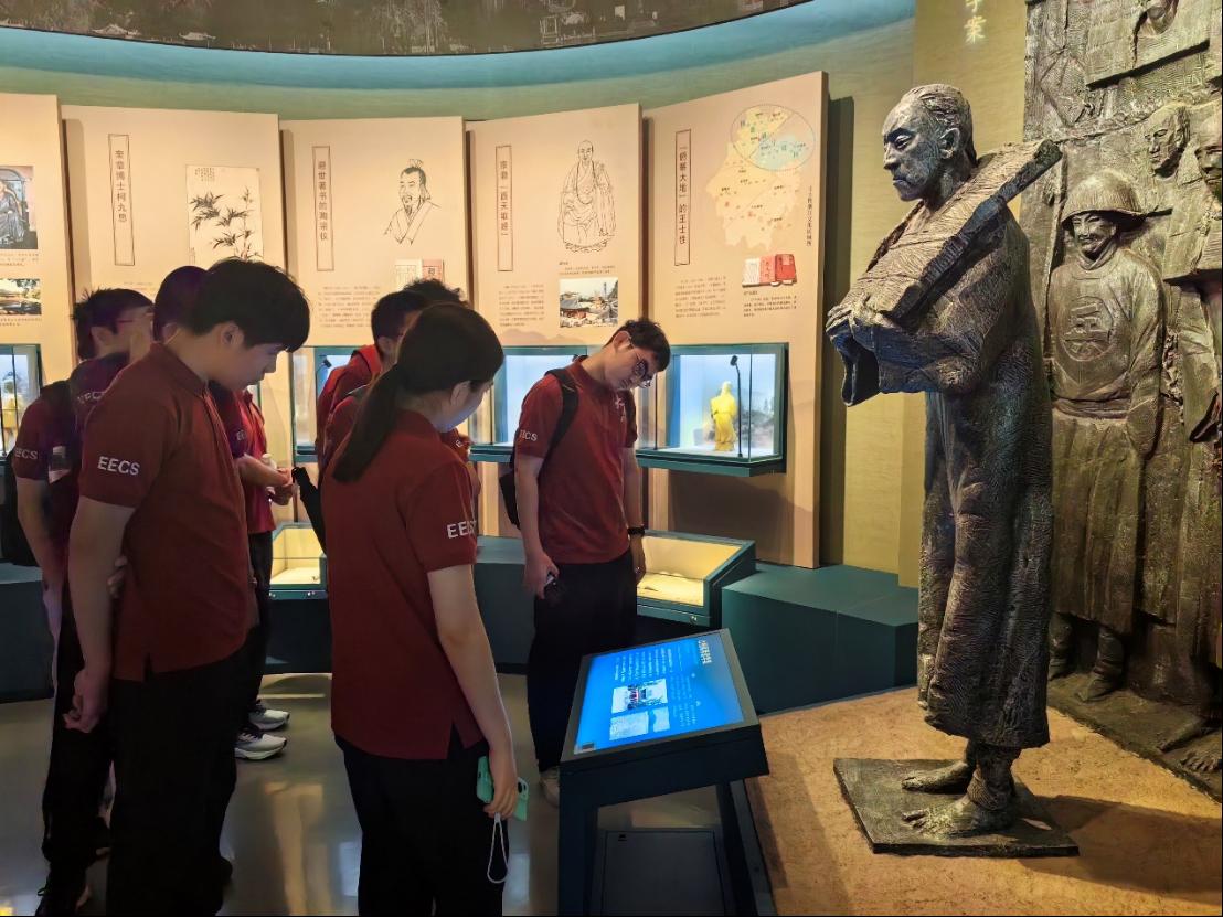 7月18日上午,实践团来到台州路桥博物馆参观。路桥自古因商而兴,素有“百路千桥万家市”的美誉。这座博物馆以“展示城市商业历史”为主题,追溯路桥商业史脉源头,解读路桥的历史记忆与城市精神。“薪火流韵——路桥民俗文化陈列”分为接春、忙夏、迎秋、过冬4个部分,以一年四季的季节更替为背景,展现路桥人丰富多彩的生活场景和独具特色的民俗文化;“重逢旧时光——路桥人眼中的生活变迁”展陈分为乡村印记、道地印象、家庭印痕、留住时光4个单元。通过特定年代场景与老物件展陈结合形式,展示路桥从1949年来社会经济、人民生活的变化与发展。生动的陈列展示与互动体验让大家对路桥的历史文化脉搏有了更深刻的体会。