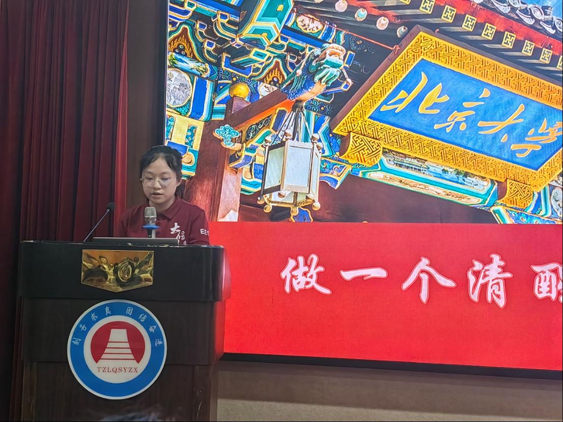 下午,实践团来到台州市路桥实验中学召开北大学生分享会。实践团的四名同学分别从高考、选科、赋分、竞赛,规范学习和答题习惯,如何做一个清醒的学习者,以及在北大学习生活一年的感受等多个方面为该中学新八年级的优秀同学们分享了自己的经验,通过听取学长学姐们的经验分享,学生们可以了解到更高效的学习方法和技巧,如时间管理、资料搜集和备考策略等。