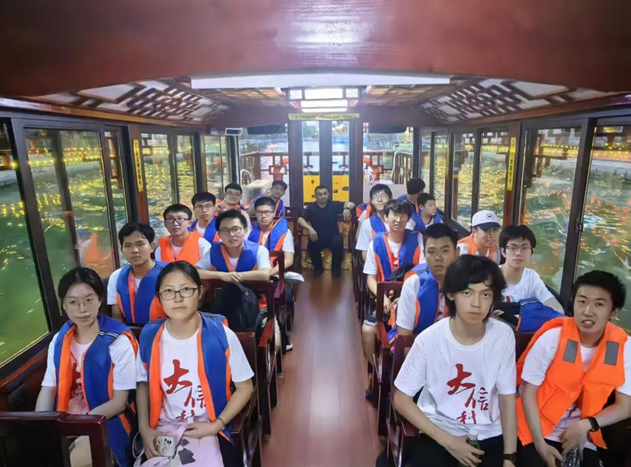 到一路走完,船只调头时,天色已晚。运河上泛起迷雾,裹着道道摇晃的灯光;游船仿佛驶入了时空隧道,白日参观的历史仿佛来到了实践团身边,仿佛听见了酒家的叫卖和诗仙带着醉意的赞叹:壮观,壮观!在一片恍惚中,游船终于靠岸,实践团结束了又一天的行程。