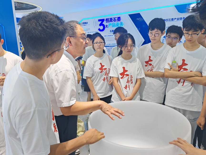 此后,实践团观摩调研了任城区山东恒圣新材料有限公司。实践团深入企业自动化生产车间,实地观摩了公司生产石墨石英制品的创新技术,了解等静压石墨材料、光伏拉晶端产品、光伏电池片、石英坩埚等制品制作及应用。这些产品不仅在材料科学领域具有重要地位,而且在半导体和光伏产业中扮演着关键角色。