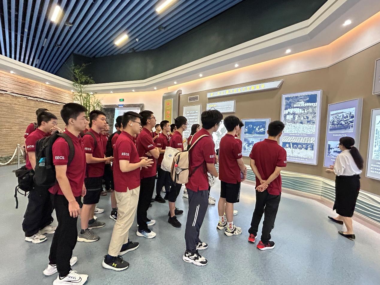 接着,实践团乘车到达蔡威事迹展览陈列馆,参观陈列,了解了蔡威的事迹。蔡威是红四方面军无线电通讯与技术侦查工作创始人,曾担任中国工农红军总司令部第二局局长,为红军情报工作做出了重要贡献,帮助红军掌握了许多关键信息。然而,由于工作需要保密,蔡威的档案中全然没有记载籍贯、家庭成员等信息。也因此,当他因伤寒在1936年于甘肃岷县意外病逝后,他的家人在很久的时间内都无法获知他的信息。在将近50年后的1985年,在漫长的证据搜集后,福建省人民政府终于正式追认蔡威为革命烈士。在此之后,蔡威的遗体终于被运回家乡与妻子合葬,得以安息。了解了蔡威极富传奇色彩的事迹后,实践团成员深受触动,立志要学习蔡威英雄的爱国主义革命精神。