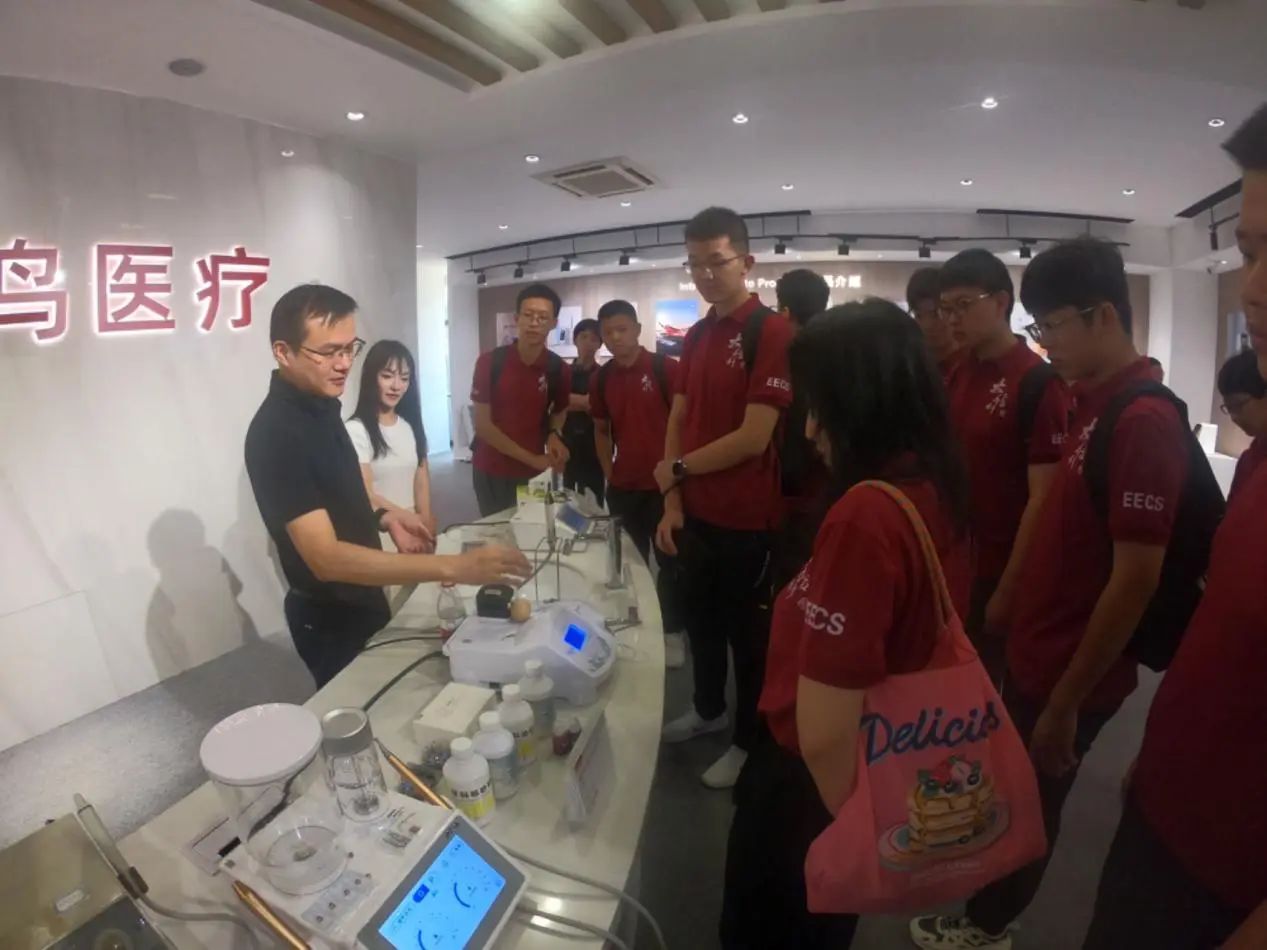 结束了啄木鸟企业之旅,实践团继续踏上征途,来到了桂林优利特医疗电子有限公司。优利特的讲解员热切地向实践团介绍了企业的文化、发展的历程和取得的成果,并带领我们参观了各种展示产品,让大家了解到了现今医疗器械制造的发展历程。工作人员带着实践团进入到了他们的研发实验室,并对一些主要设施进行了一些讲解;随后,实践团跟随工作人员的脚步,穿上鞋套并踩过吸尘的地毯,前往生产车间,看着一件件基础材料从车间里加工,变为了便捷实用的高科技产品。
