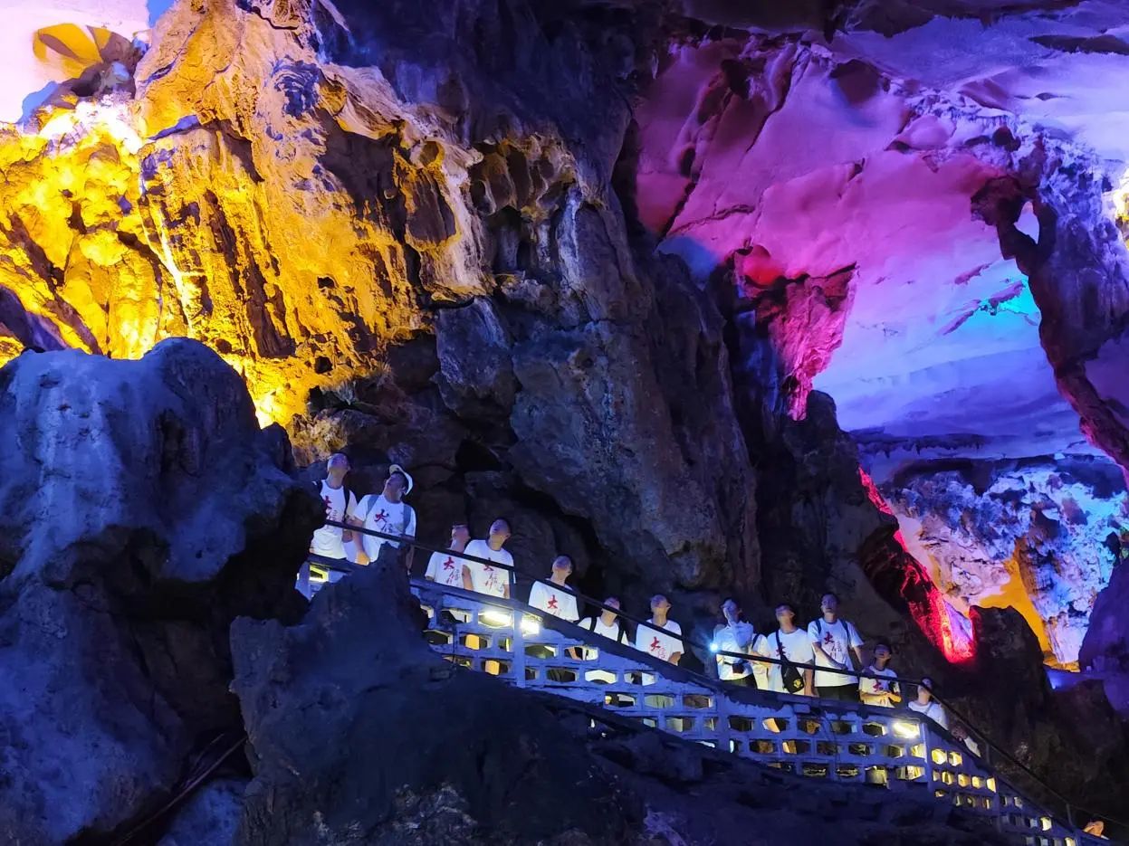 随后,同学们参观了七星岩景区,考察了桂林典型的岩溶地貌。跟随着讲解穿越了幽长的七星洞,仰望“岩洞的侵蚀地形”,俯瞰“岩洞的堆积地形”,于岩洞中体会桂林“山青水秀、洞奇石美”之四绝,欣赏着大自然的鬼斧神工,以及人们对自然景象的独特理解。同时,产生了对于如何将当地自然景观与历史文化相结合转换为文旅资源的深刻思考。